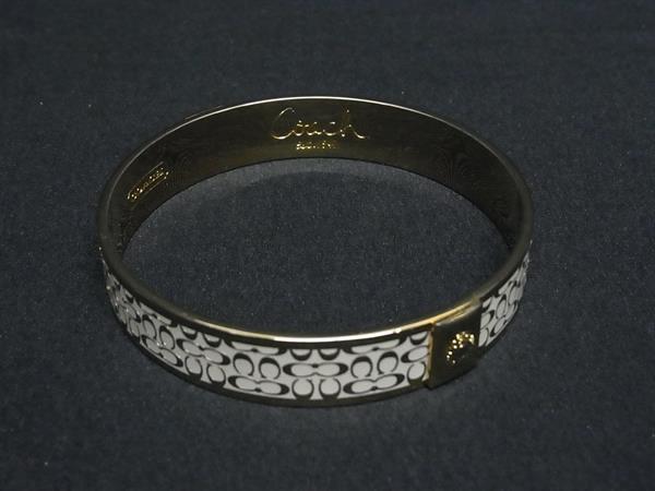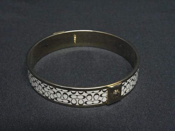 ■極美品■ COACH コーチ シグネチャー バングル ブレスレット アクセサリー レディース ゴールド系×ベージュ系 DI8447