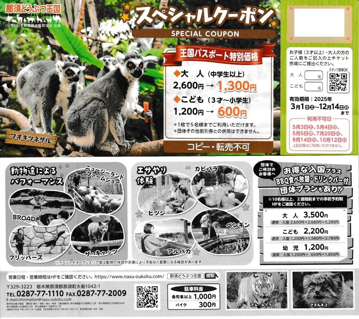 ●那須どうぶつ王国 スペシャルクーポン 詳細は写真を参照ください | |