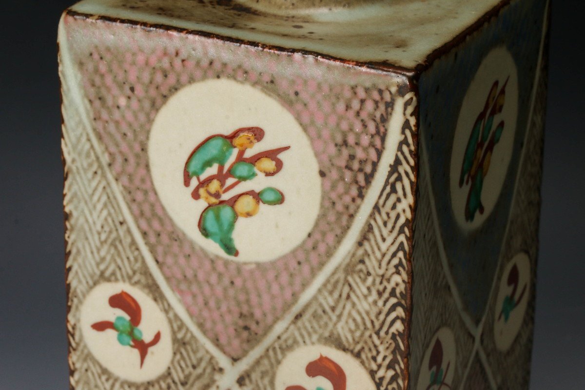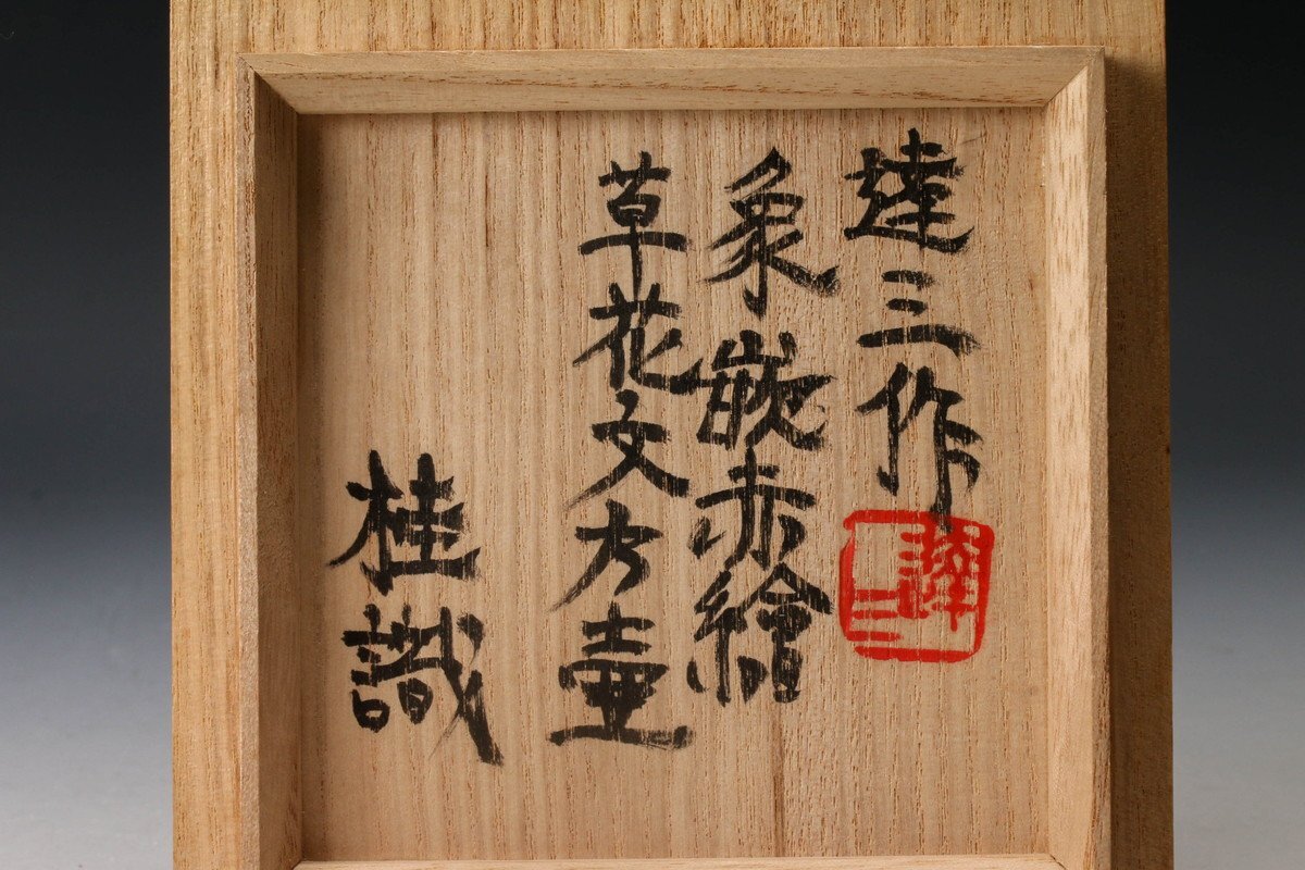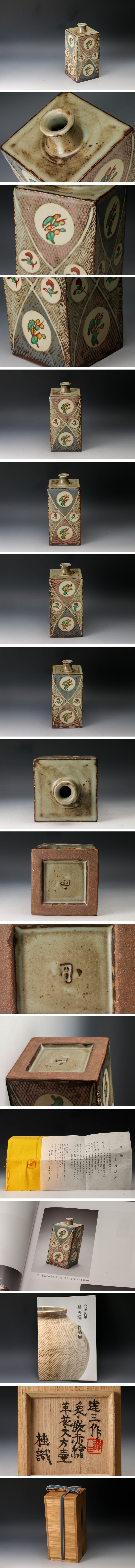【佳香】人間国宝 島岡達三 象嵌赤繪草花文方壷 没後10年作品展 展示作品 島岡桂識箱 共布 栞 作品展パンフレット 本物保証