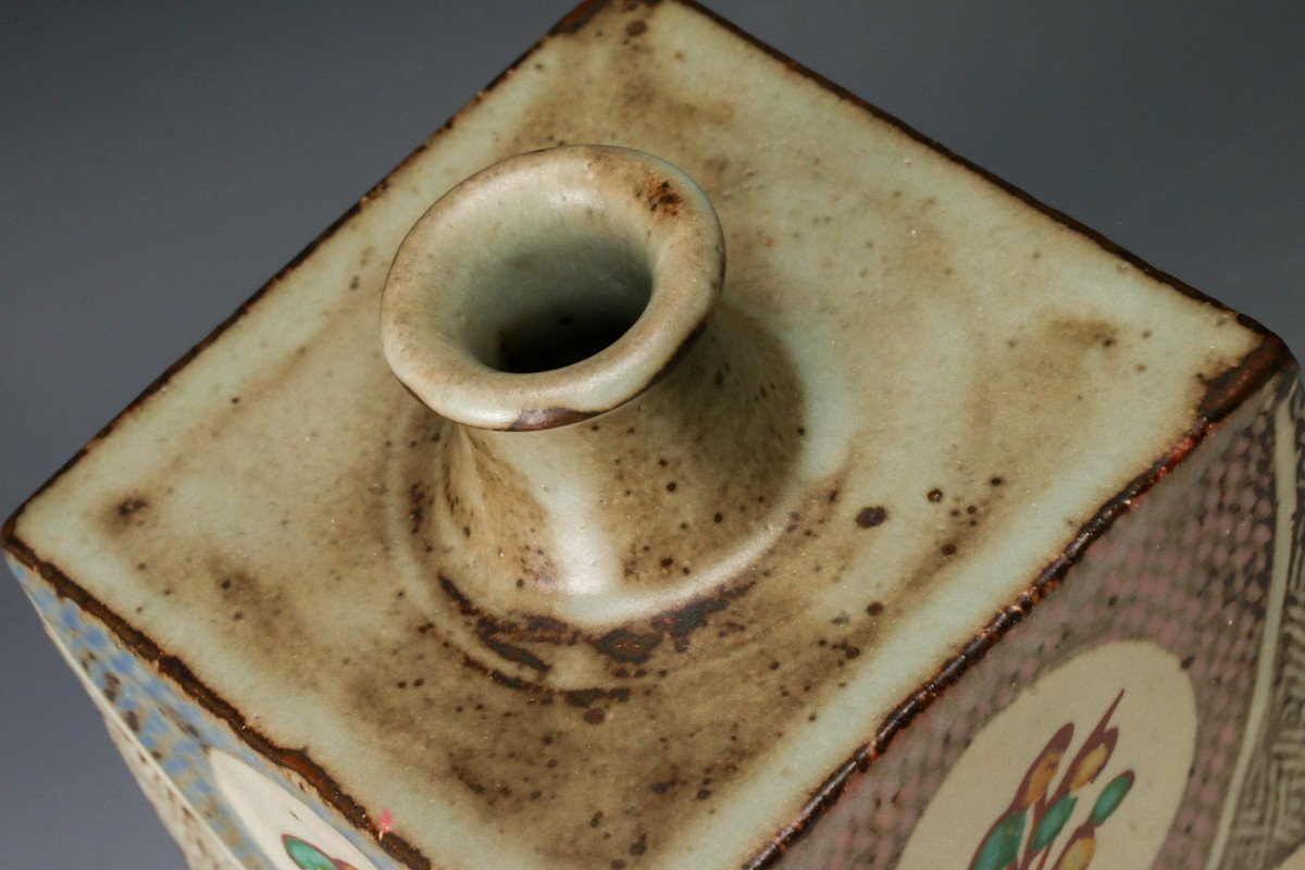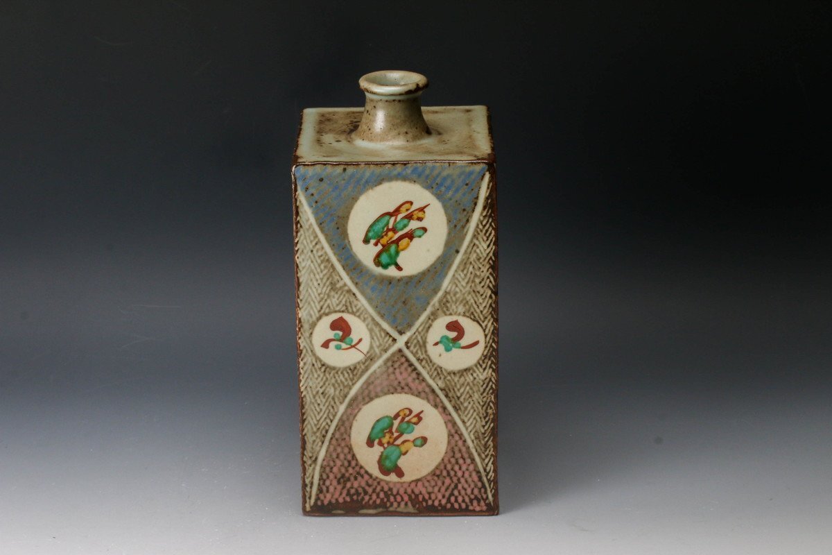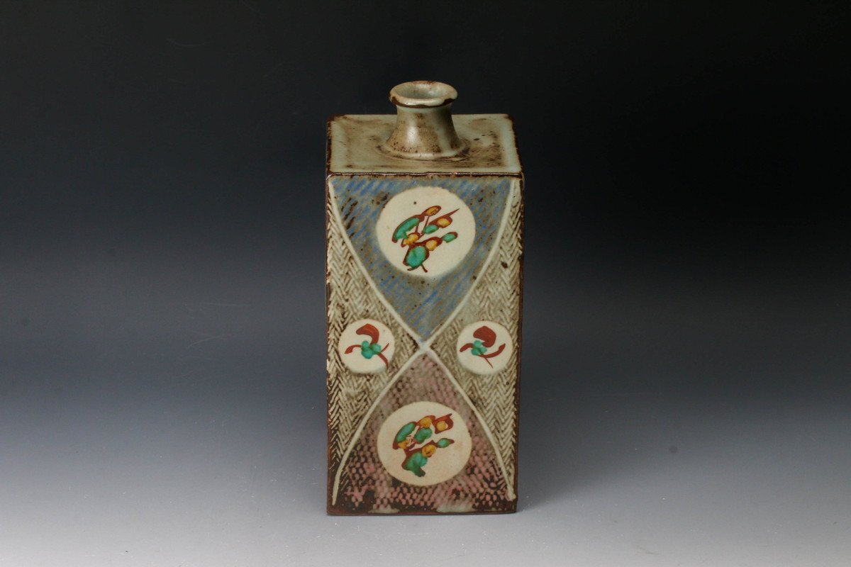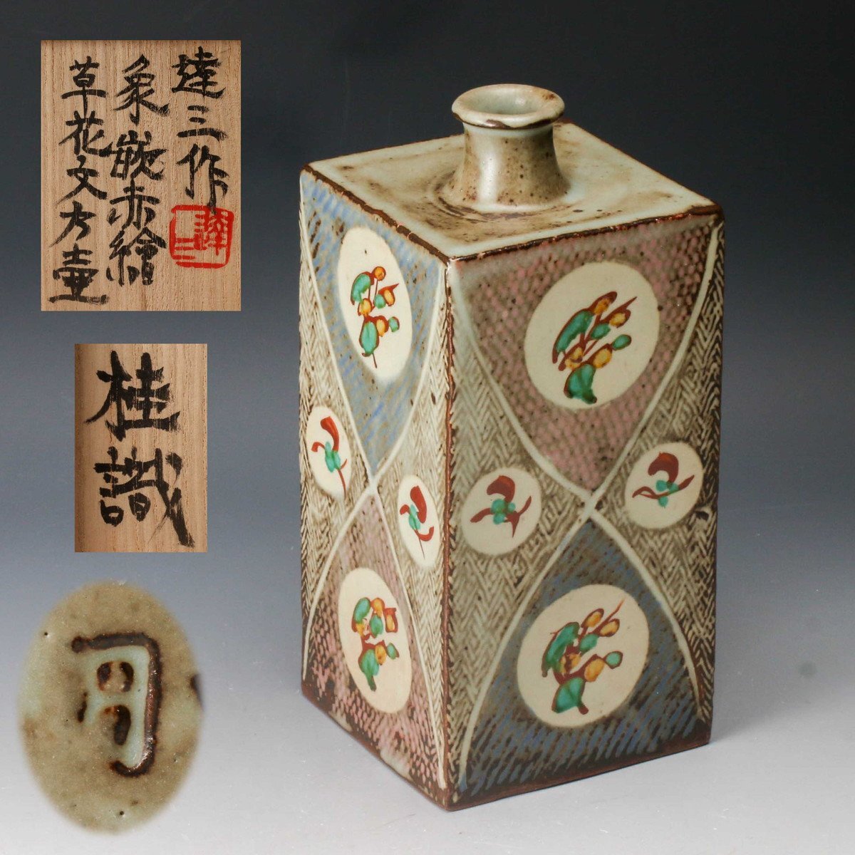 【佳香】人間国宝 島岡達三 象嵌赤繪草花文方壷 没後10年作品展 展示作品 島岡桂識箱 共布 栞 作品展パンフレット 本物保証