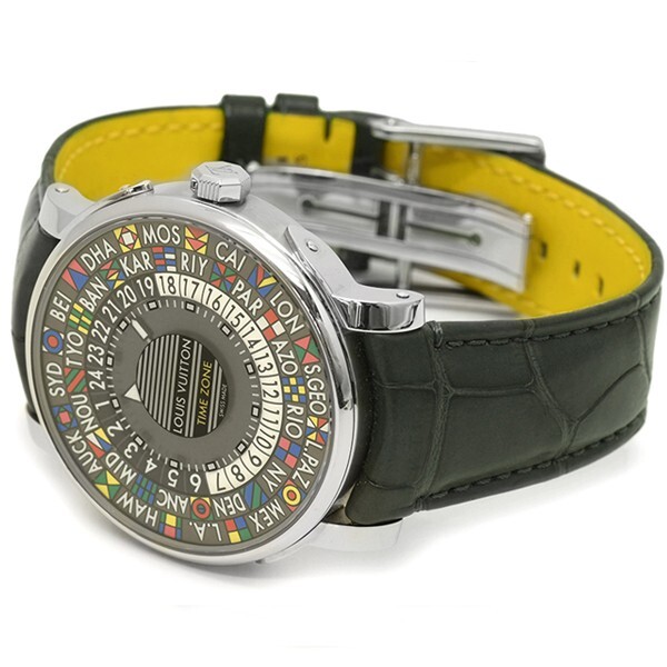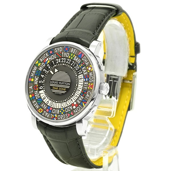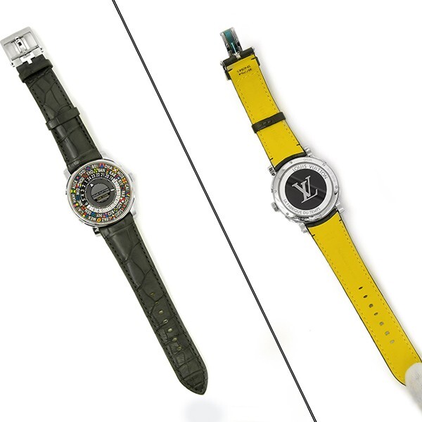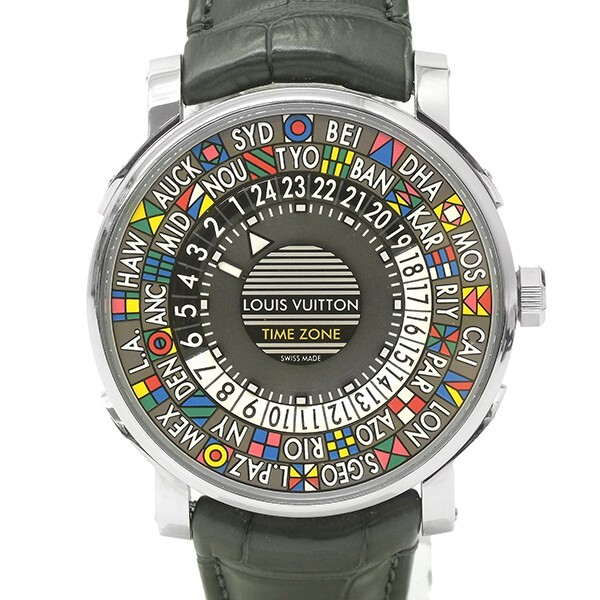 Louis vuitton (ルイ・ヴィトン) 【品名】 エスカル タイムゾーン 【型番】 Q5D20 【シリアル】 TH**** 【機械】 自動巻き 【文字盤】 マルチカラー 【素材】 ケース:SS ブレス:ワニ革 風防:サファイアガラス 【サイズ】 タイプ:メンズ ケース径:約39mm(リューズ除く) 腕周り:約19cm 調整可能コマ数:- 【重量】 68.1g 【参考定価】 - |