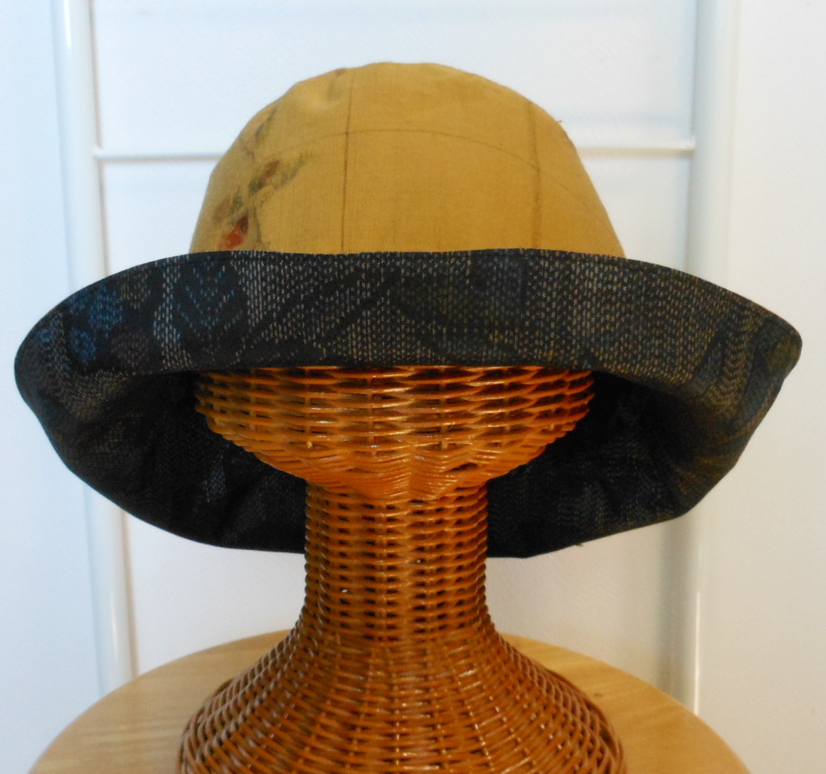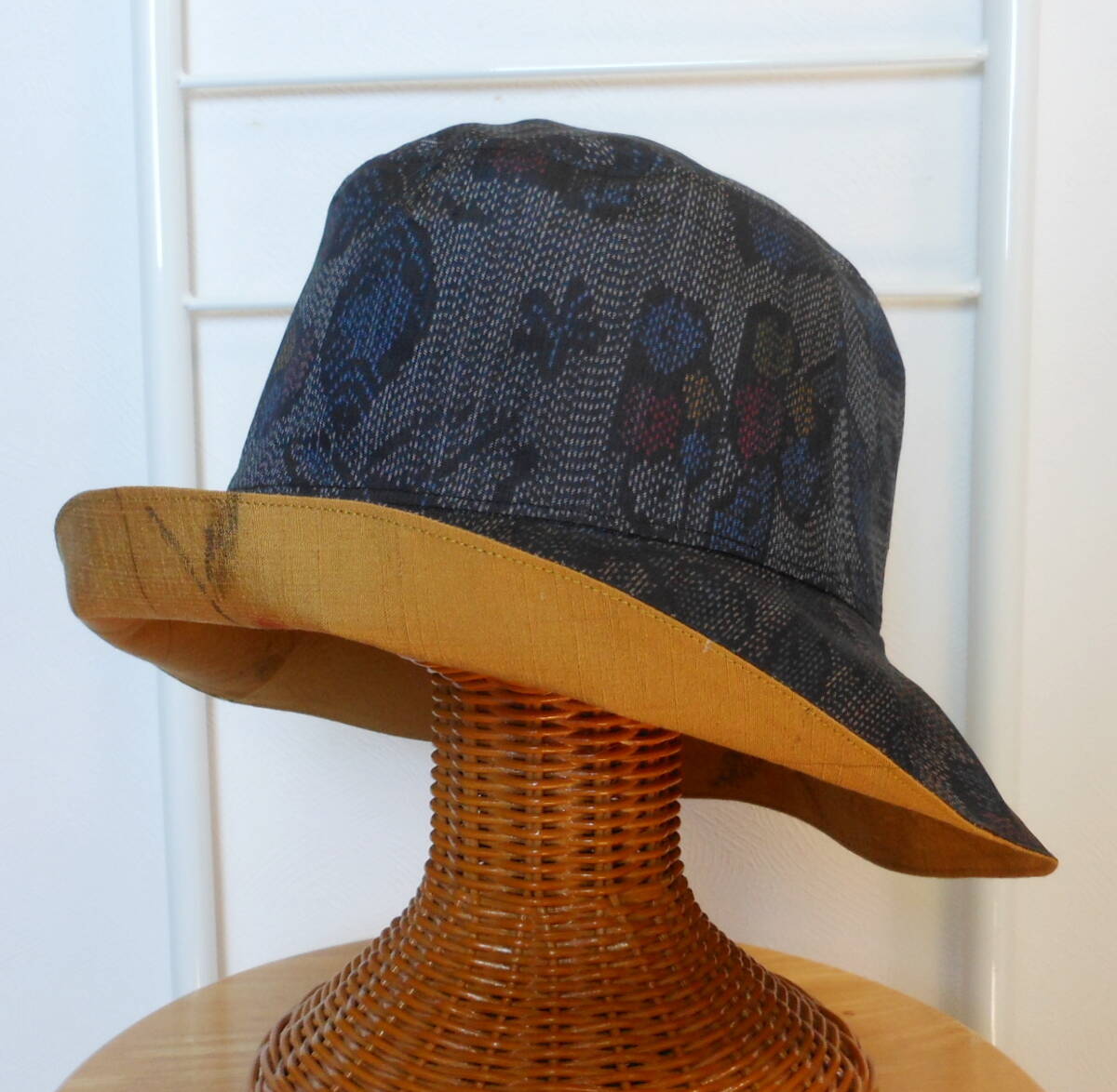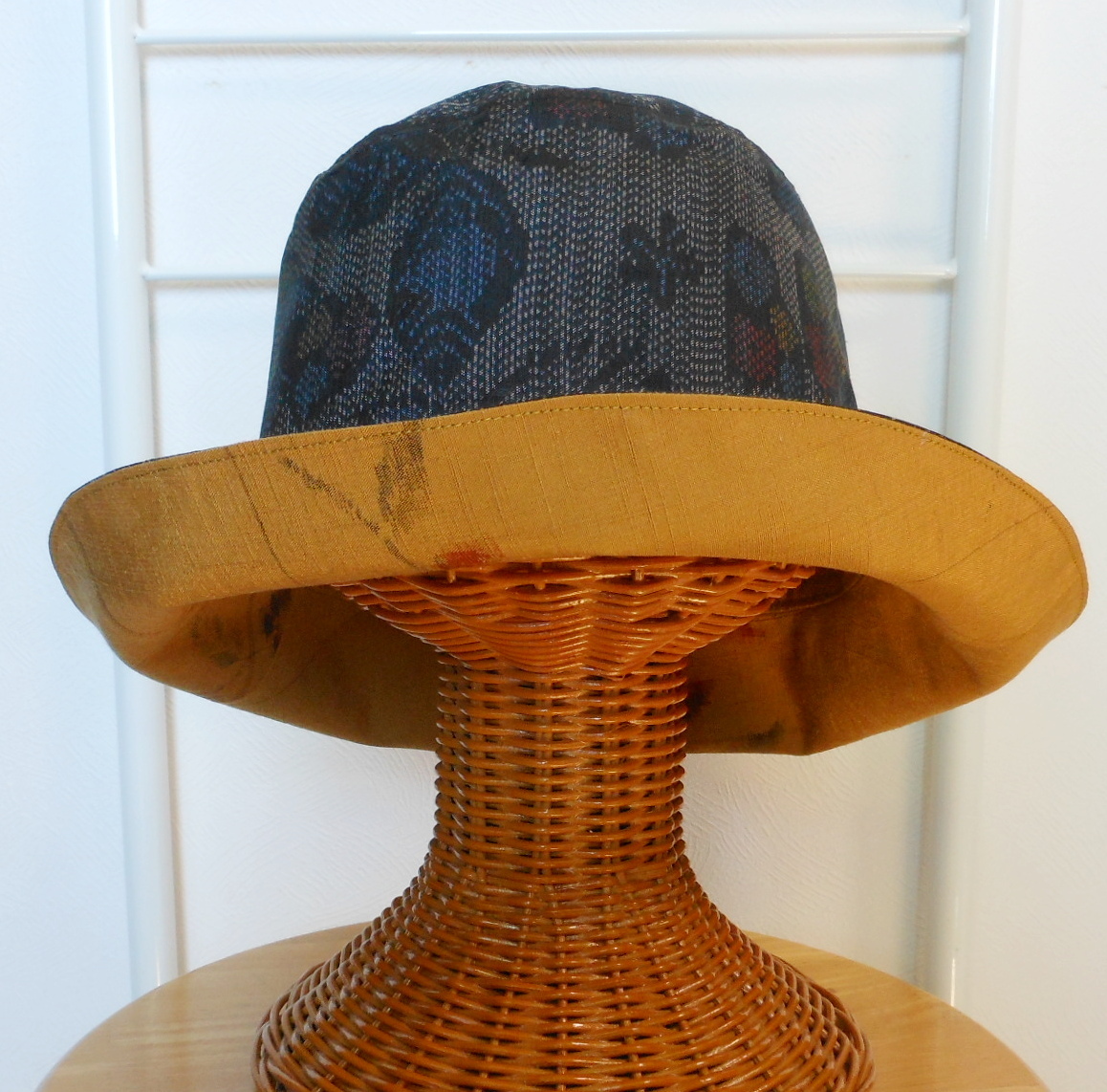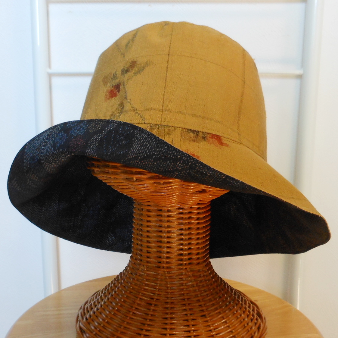 着物リメイク☆正絹の紬2種からリバーシブルハット アレンジ自在 ゆったり目 紫外線対策 おしゃれ M~L