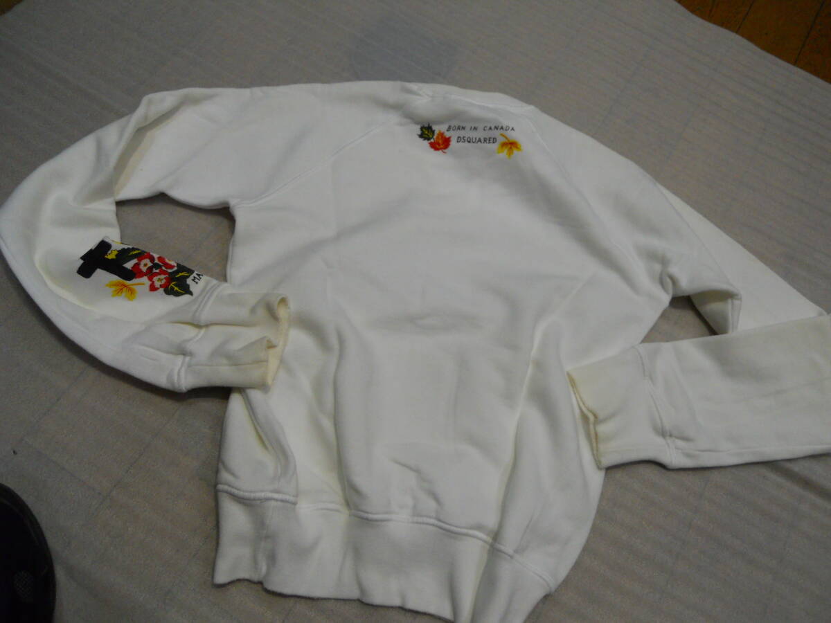 | DSQUARED2のトレーナーです。 サイズ表記が、 Sです。 色が、 白です。 袖丈が 79cm、胸幅が平置きで 48cm、着丈が 55cmです。 素材が、 綿 100%です。 状態は、 多少使用感がございます。 |