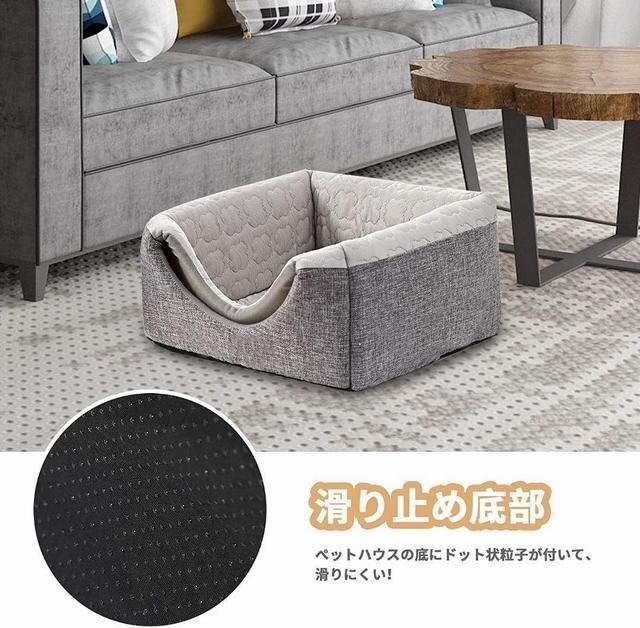 【滑りにくい】 ハウスの底部は点状のシリコンがたくさん付いていて、優れた滑り防止機能があります。 滑りやすいフローリングの上に置いいたときに、ペットがペッドに飛び込んでもすべらないので安心です。