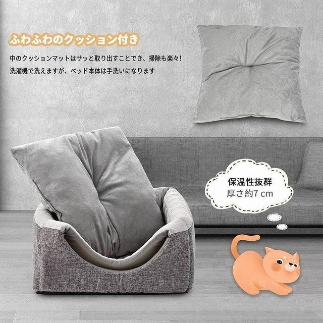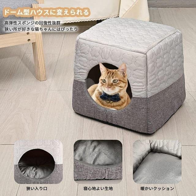 【暖かい】 猫ハウスは高品質なリネンを採用して、中はスポンジをよく詰まっているので気持ちよくリラックスして休めます。 保温性高く、しっかり熱量を閉じて、暖かくペットを包んでくれます。