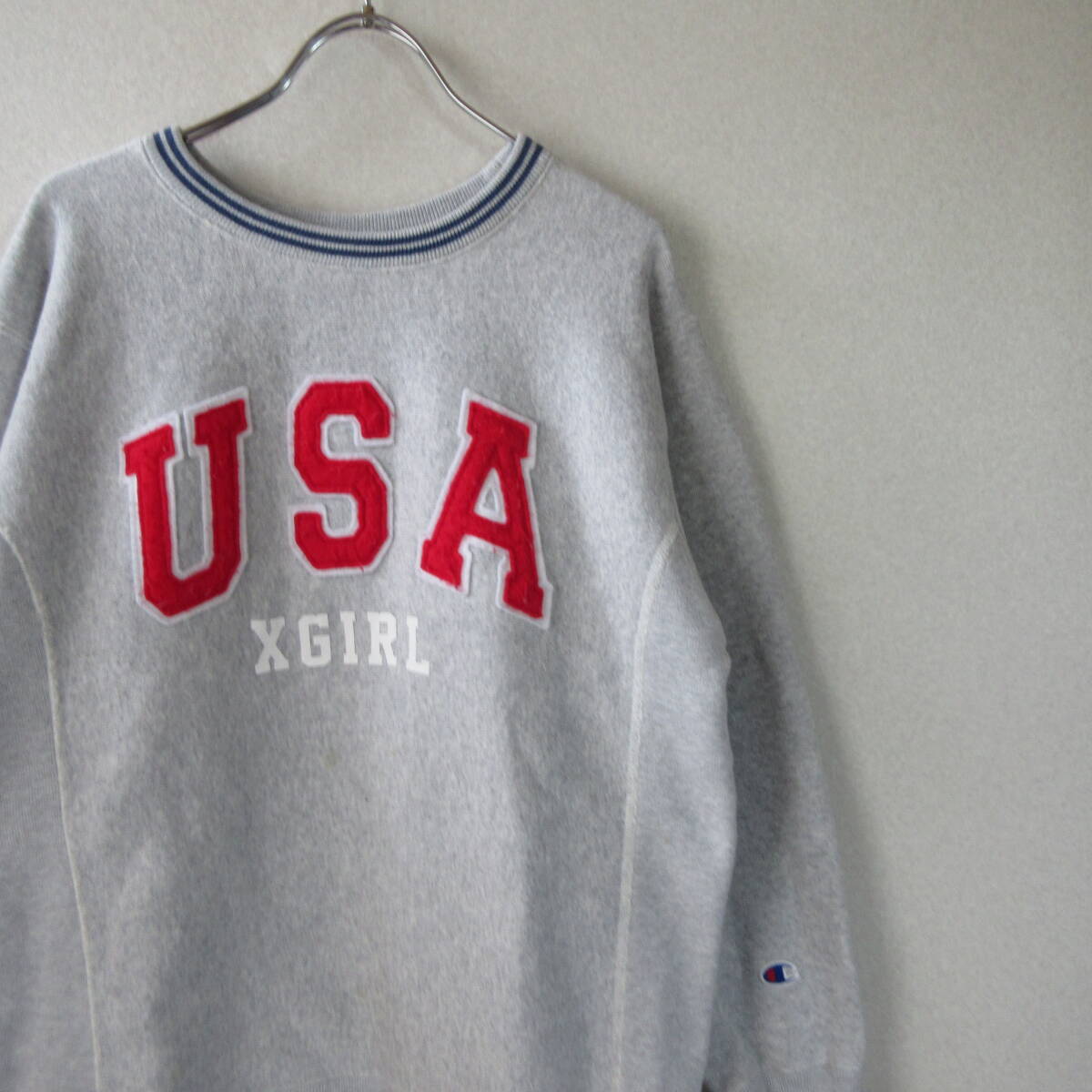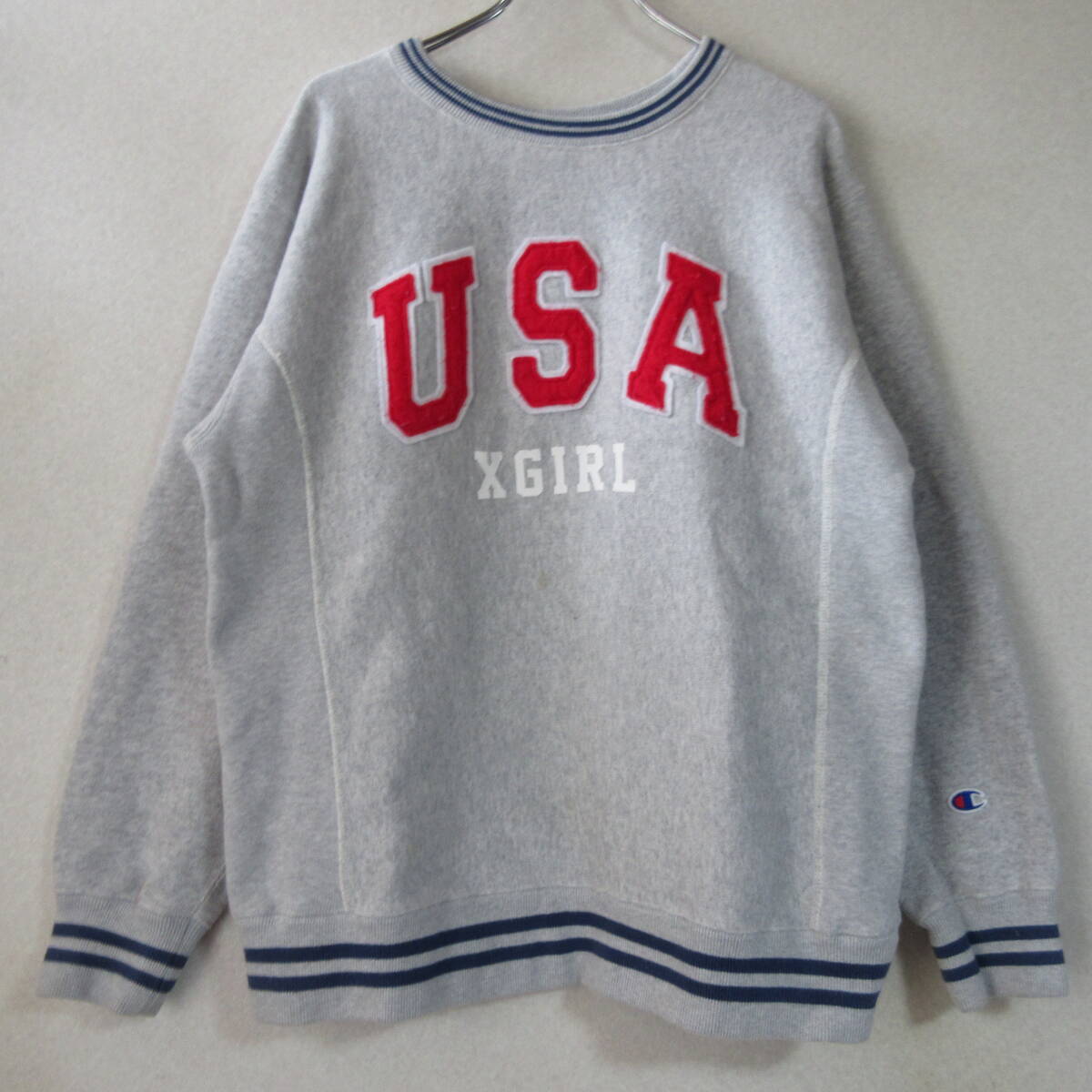 ○X-GIRL エックスガール Champion チャンピオン◆リバースウィーブ スウェット トレーナー◆レディース グレー Mサイズ