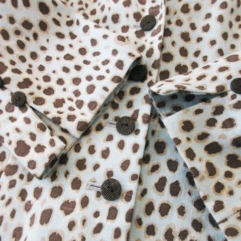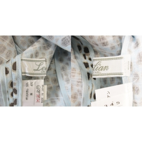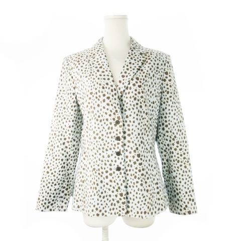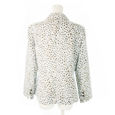 レリアン Leilian テーラードジャケット 麻 リネン混 アニマル レオパード ヒョウ柄 11 青 ブルー /CK7 レディース