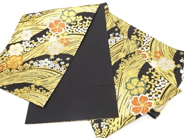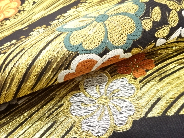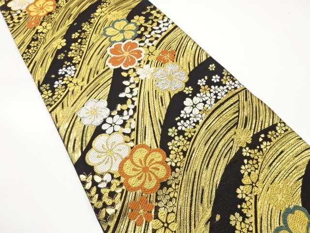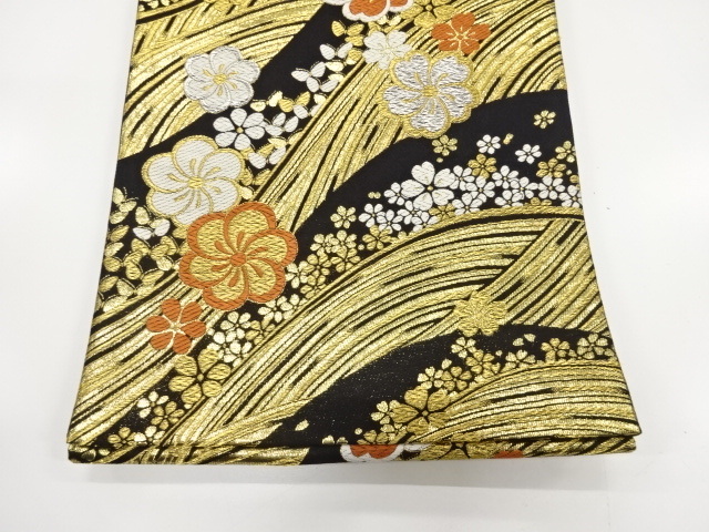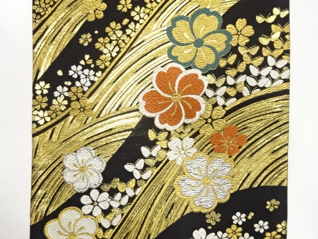 荒波に桜・蝶模様織り出し 振袖用 袋帯 (AJI1K-004)