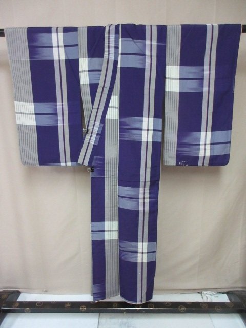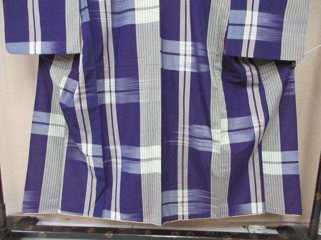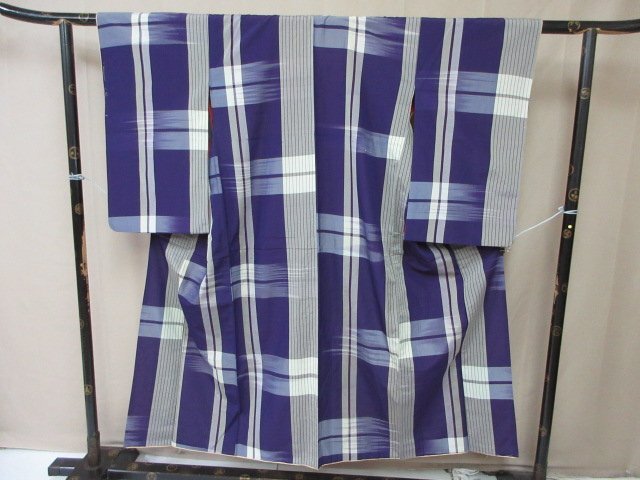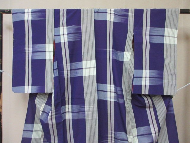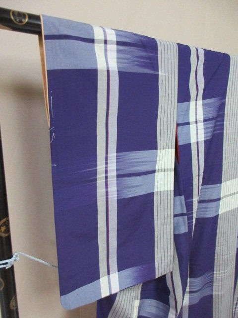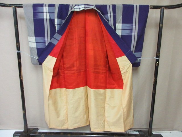 商品名 | 1円 中古 小紋 正絹 着物 縮緬 和服 和服 紅絹 アンティーク レトロ 縞 幾何学 お洒落 高級 袷 身丈137cm 裄62cm【夢職】★ |