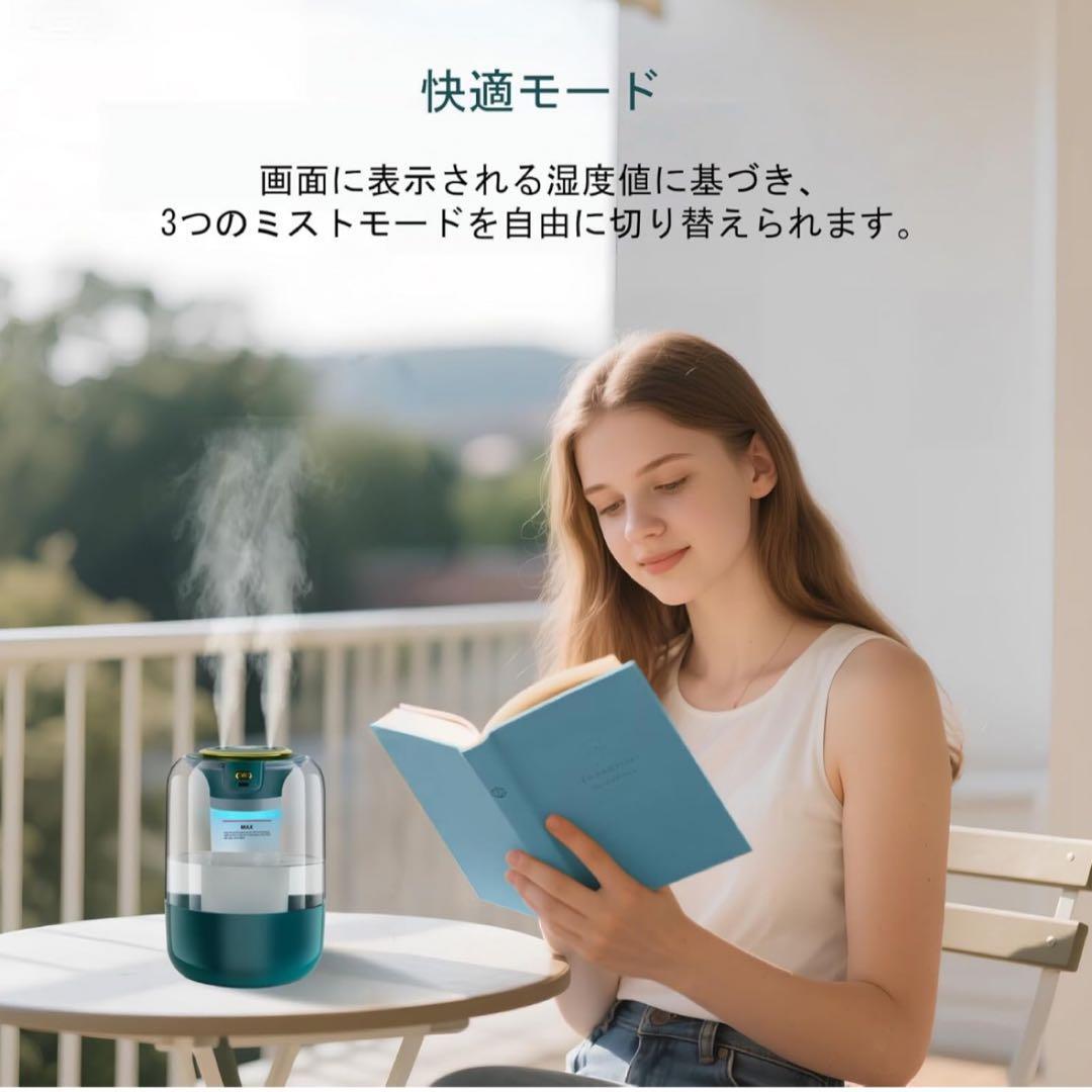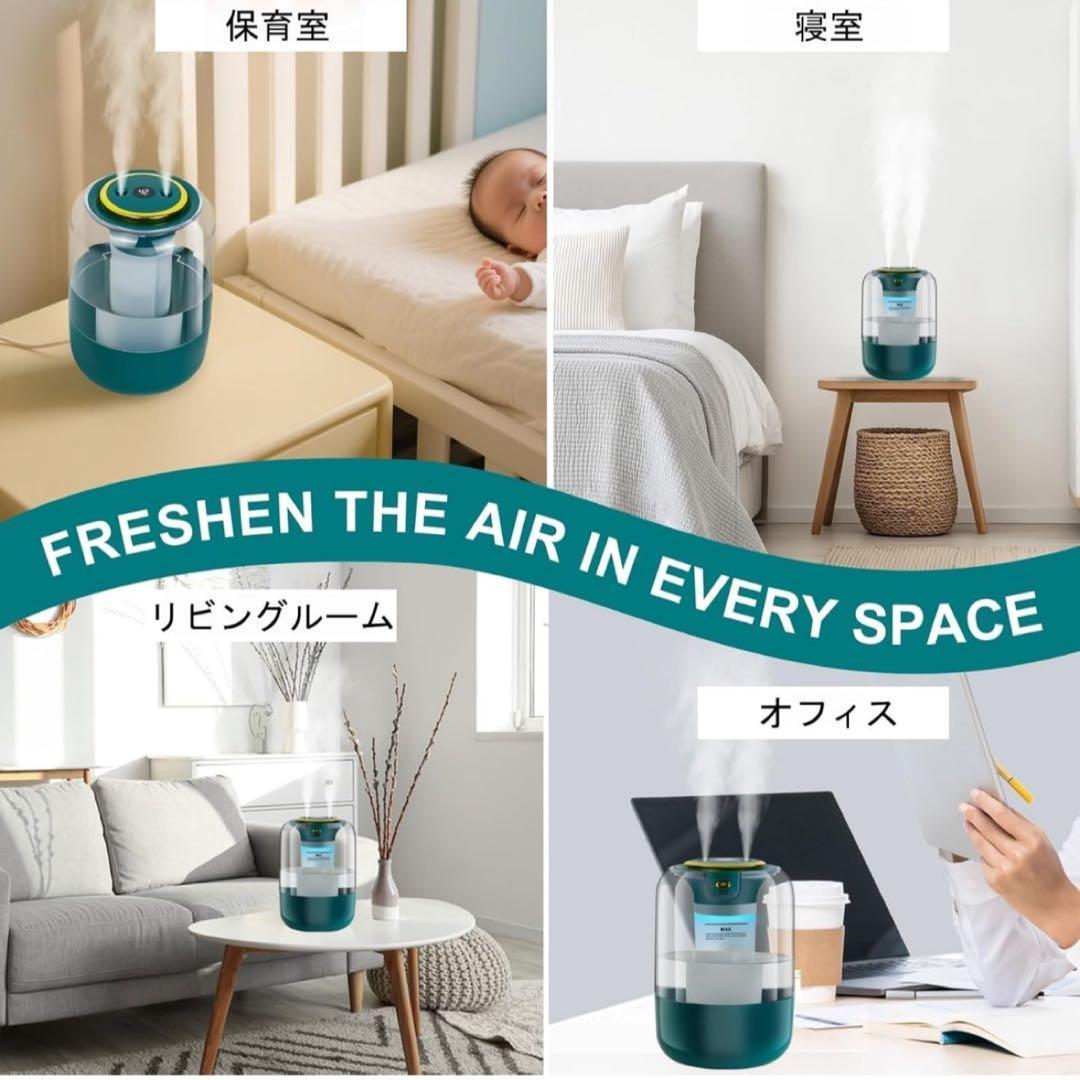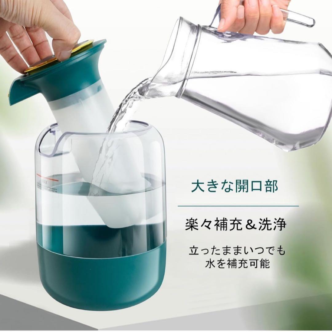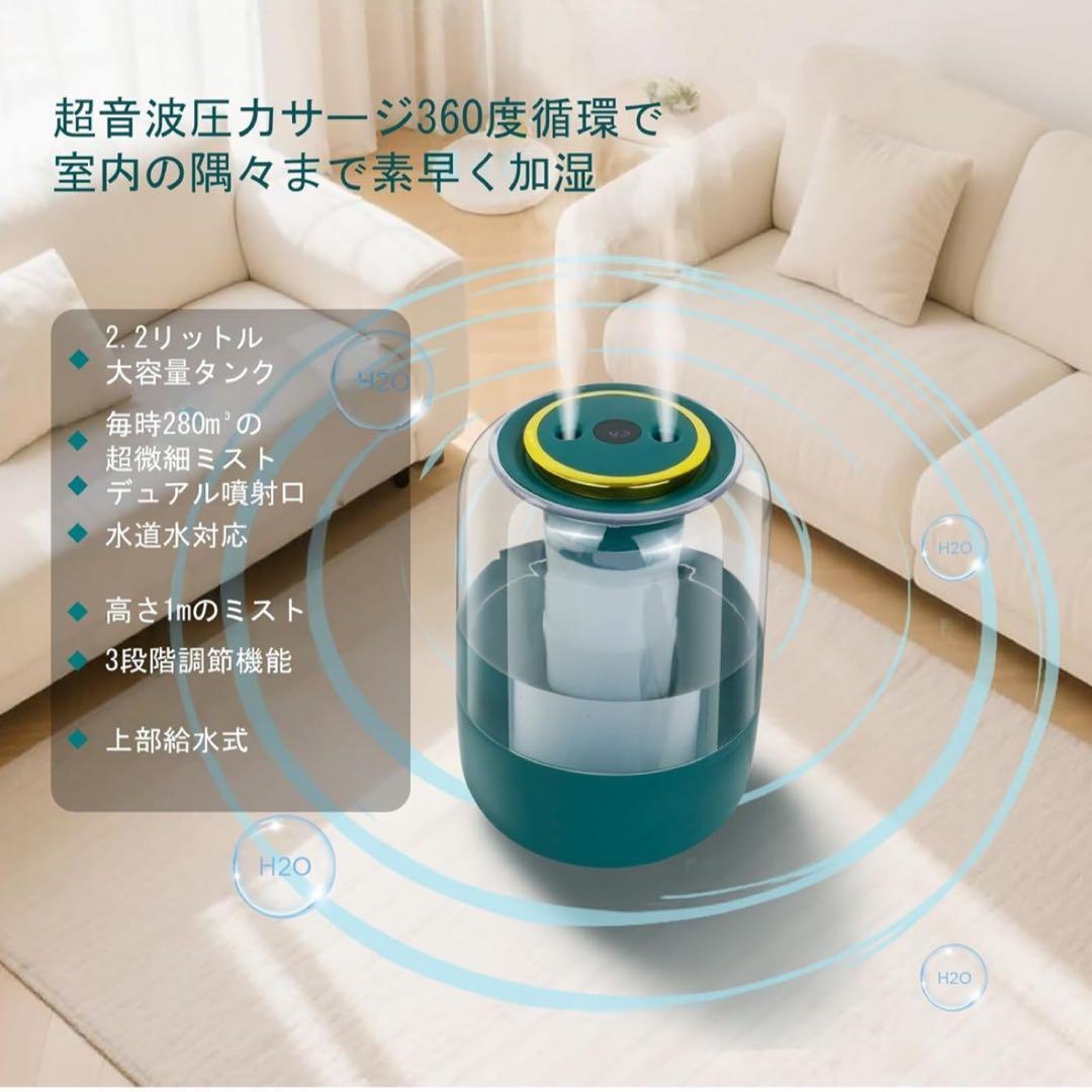 「長時間稼働・パワフル加湿」この卓上加湿器は2.2Lの大容量タンクを搭載。1度の給水で最大16時間連続運転でき、頻に給水する必要はありません。パワフルな加湿量で約6~10畳の部屋の湿度を効率よく保ちます。噴出されるミストは高さ約60cmで、オフィス、寝室、リビングルームの床や壁、インテリアが濡れる心配もありません。一人暮らしのお部屋やリビング、寝室、子供部屋などいろいろな場所で活躍します。ご注意:初めてご使用になる前に、必ず綿棒を水に10秒間完全に浸してから装着し、電源を入れてご使用ください。