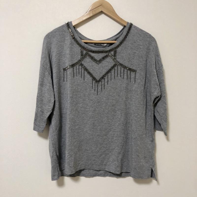 stradivarius L ストラディバリウス カットソー 七分袖 Cut and Sewn 灰 / グレー / X 銀 / シルバー / 10010059