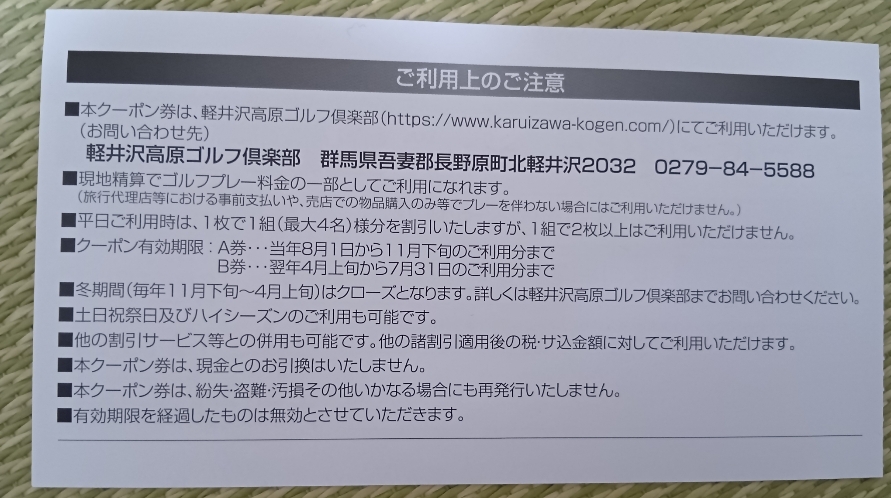 ③11月下旬まで 大成建設 株主ご優待券 2,000円 A券 割引券 クーポン券 TAISEI タイセイ 群馬県 軽井沢高原ゴルフ倶楽部 プレー