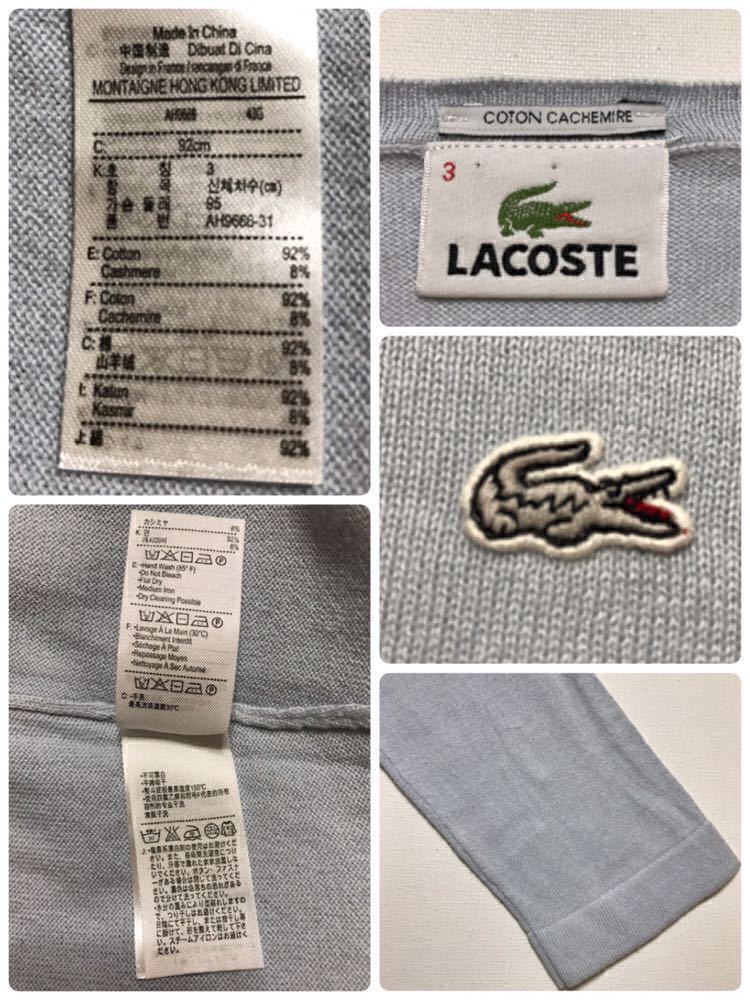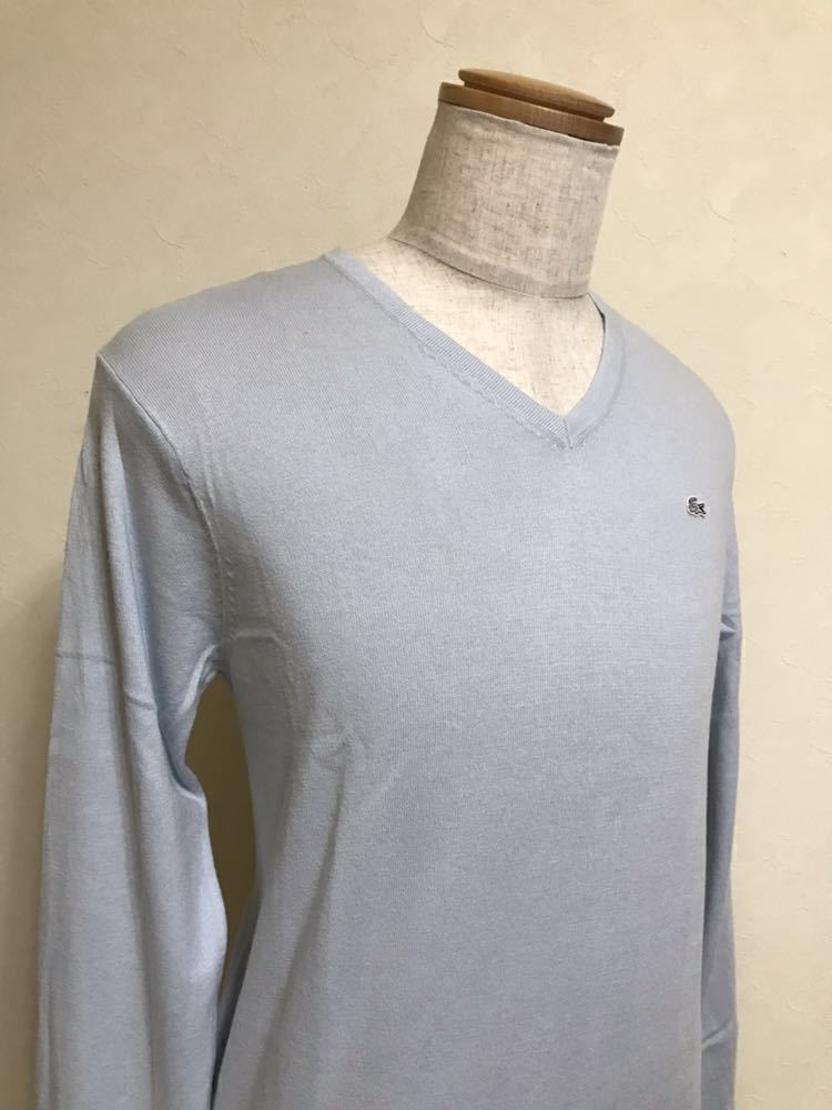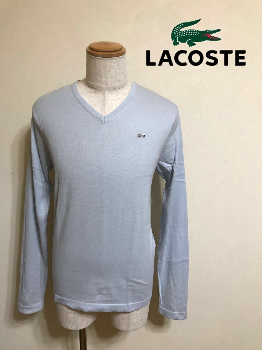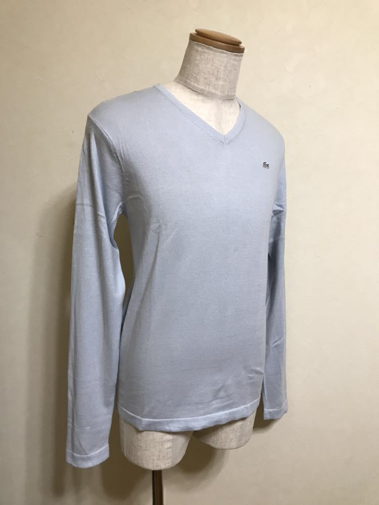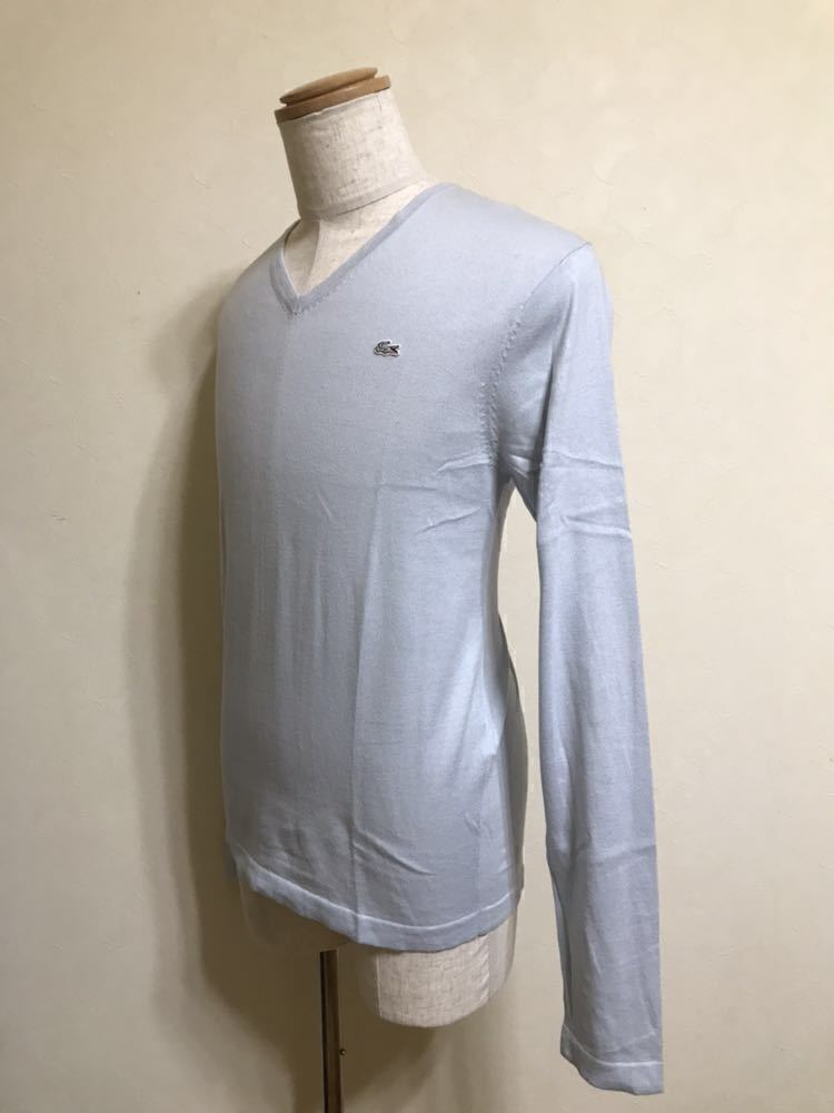 LACOSTE COTON CACHEMIRE ラコステ Vネック セーター カシミヤ 綿 サイズ3 長袖 トップス ライトブルー 薄手 銀ワニ