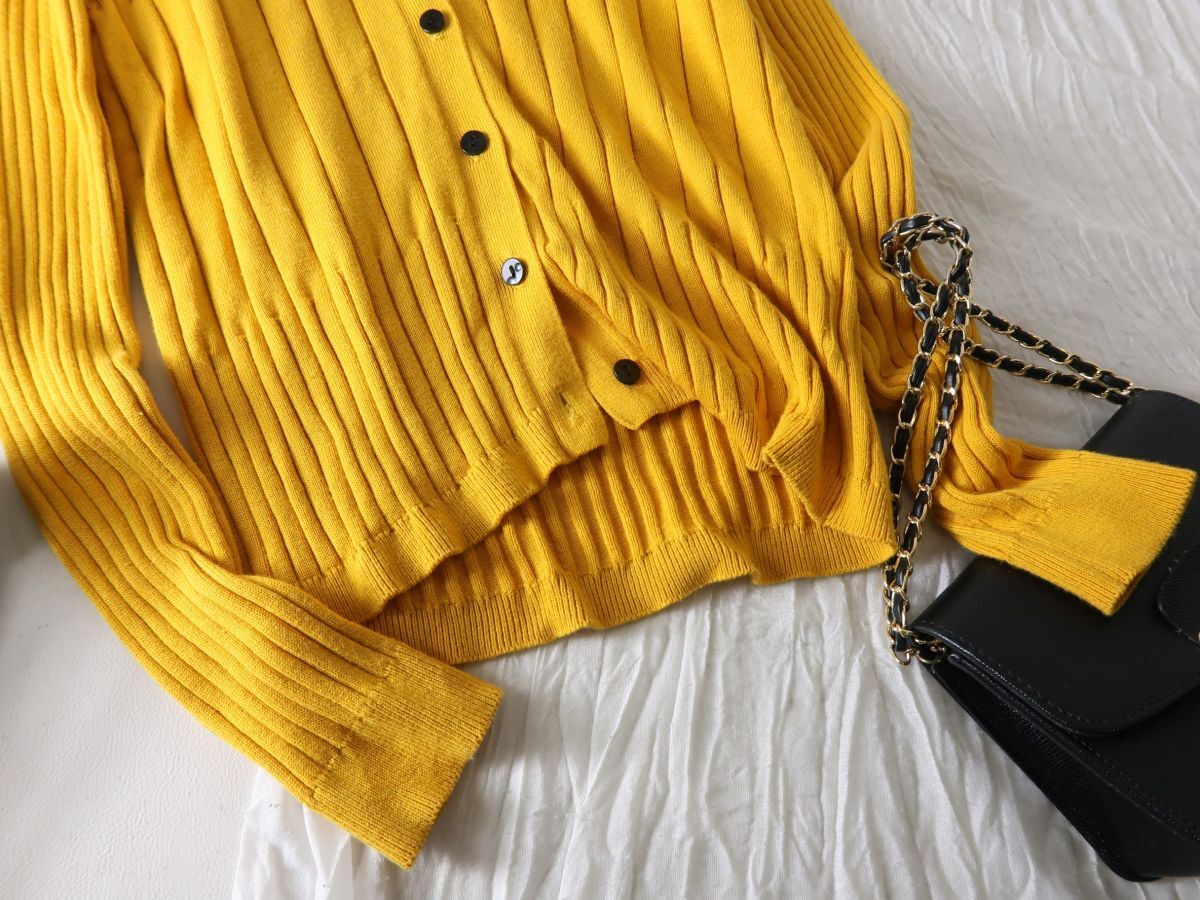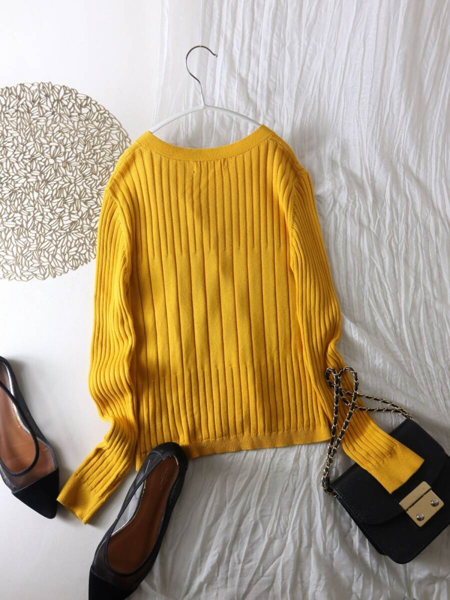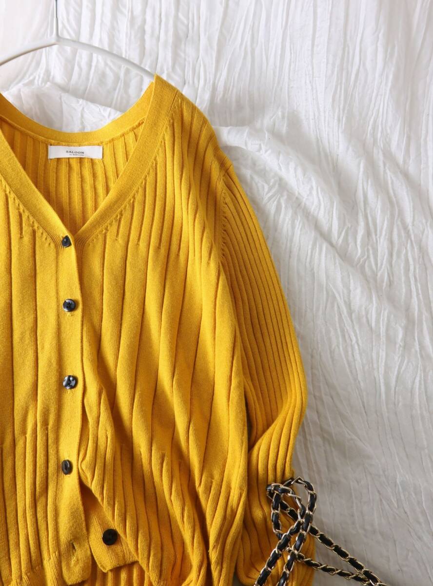滑らかなタッチとほのかな光沢感が特徴のリブニットカーディガン。