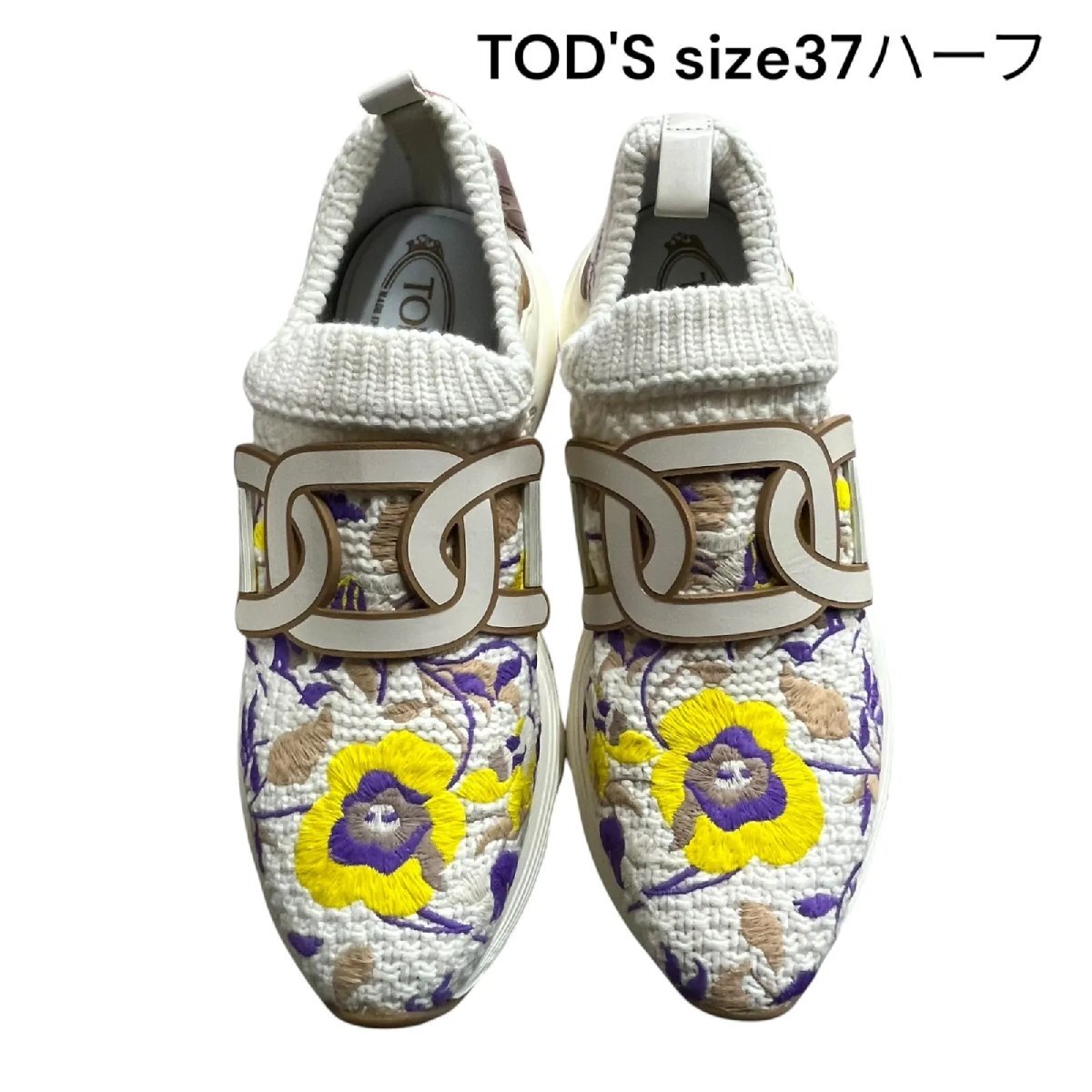 ●未使用 トッズ TOD'S ケイト ファブリック スリッポン スニーカー 花柄刺繍 37ハーフ レディース 5D409