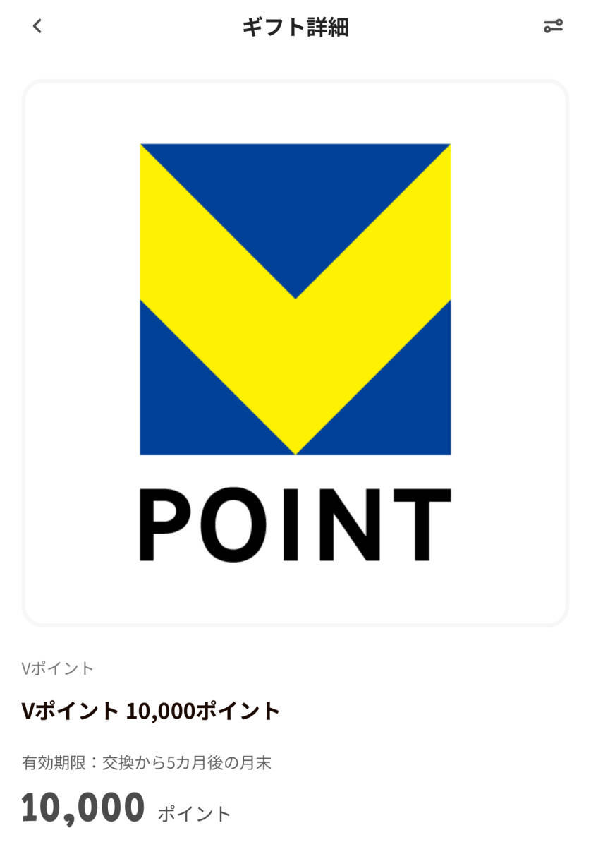 Vポイント10,000ポイントに交換できるギフトコードです。