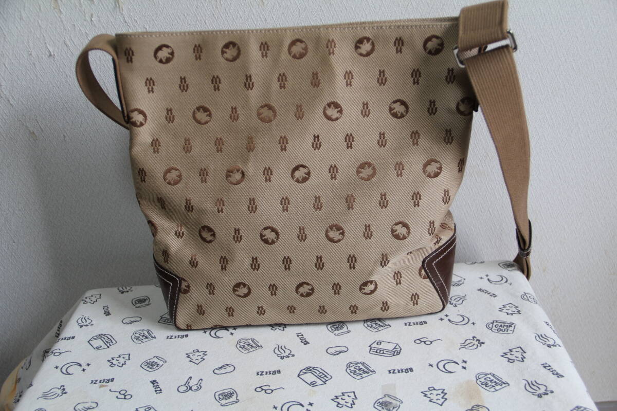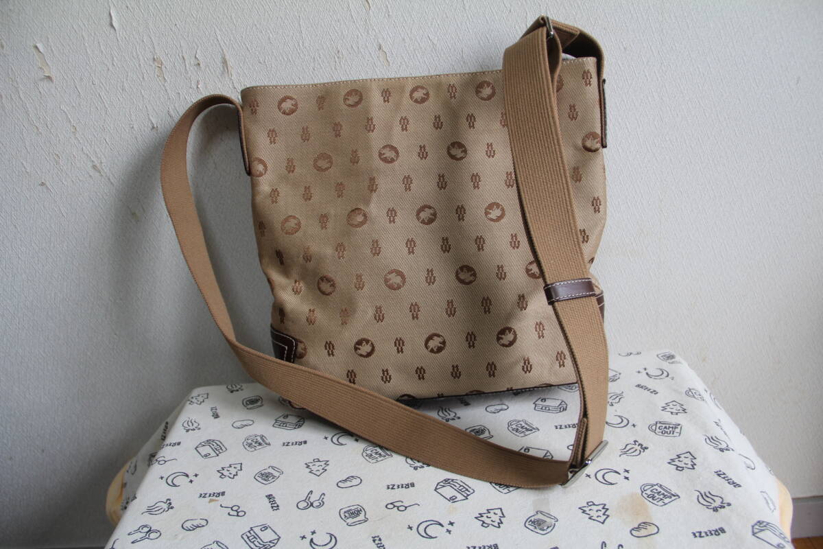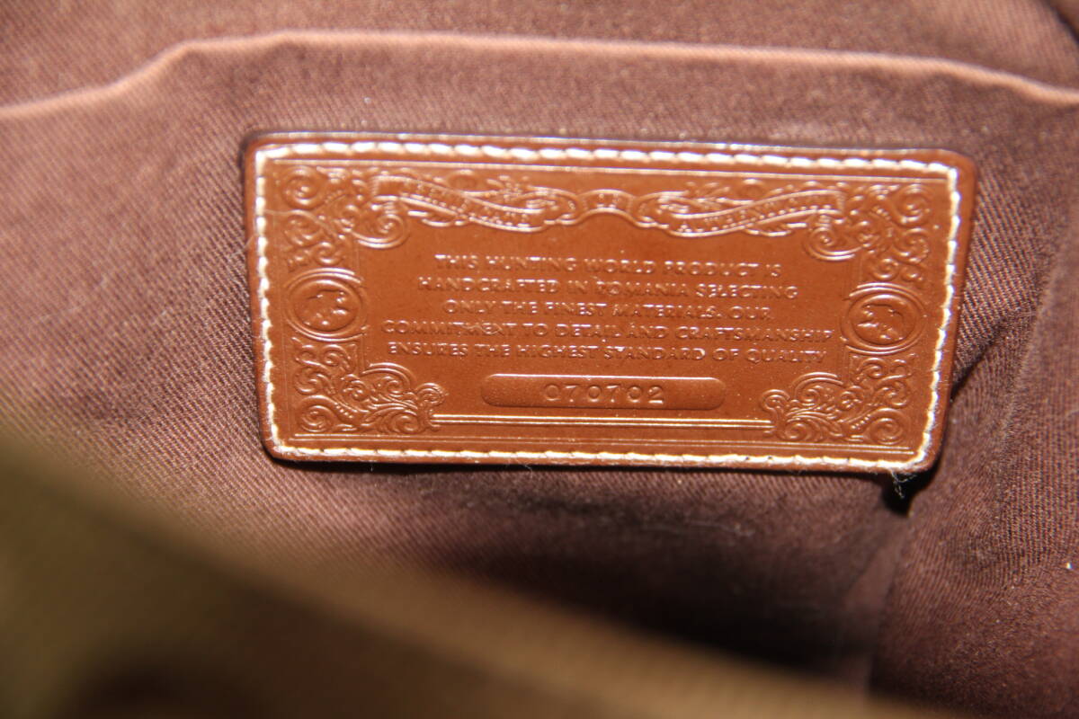 美品 Hunting World, ハンテイングワール、ショルダーバッグ、キャンバス、カーキXダークブラウン、 メンズ&レデイ―ス