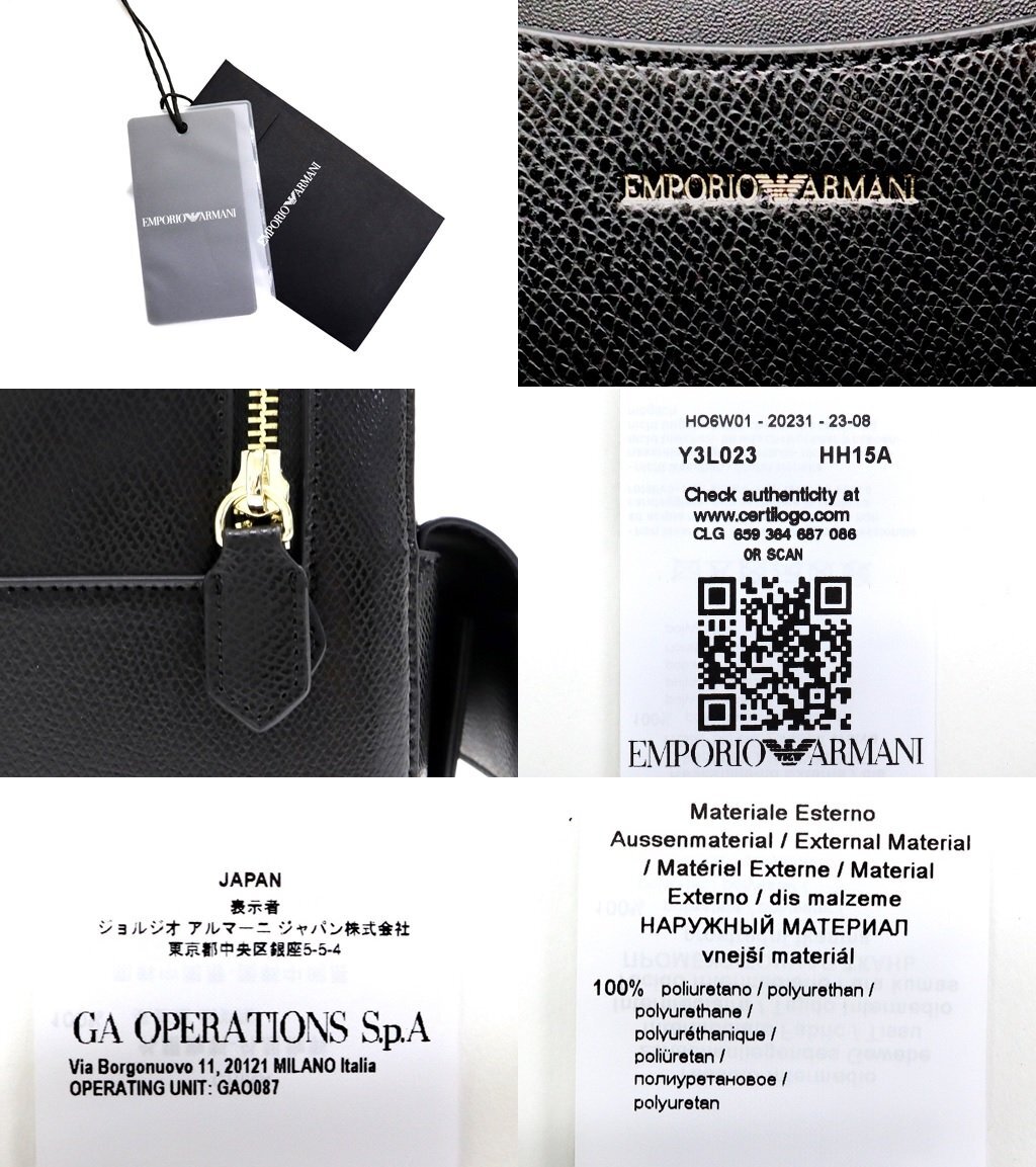 8万新品◆EMPORIO アルマーニ 軽量PUレザー A5サイズ イーグルロゴバックパック 黒