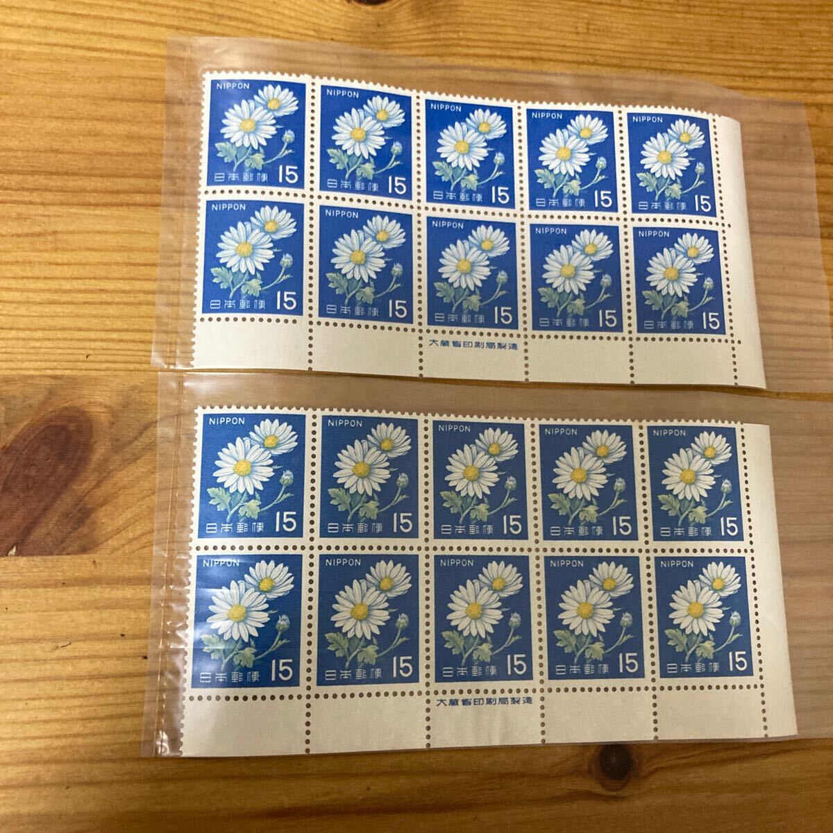 【未使用、銘版付き】切手 菊 キク 15円 10枚ブロック 2シート