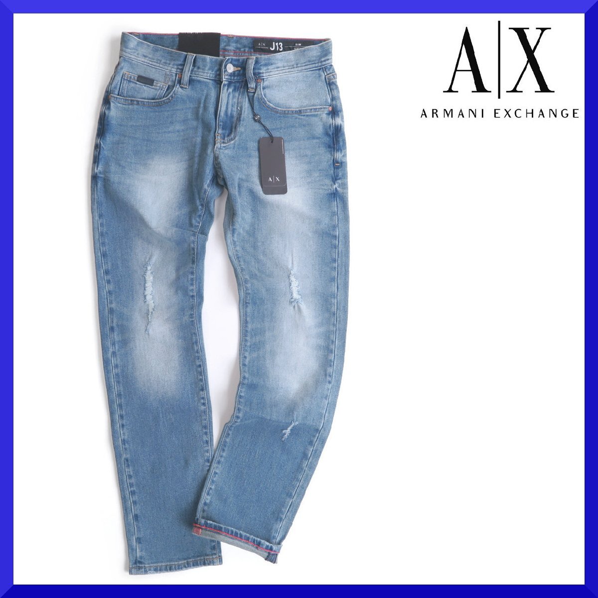 【参考価格4,2万】ARMANI EXCHANGE J13 SLIMダメージ加工デニムパンツ/ウォッシュブルー/サイズ:28R/メンズ/新品未使用