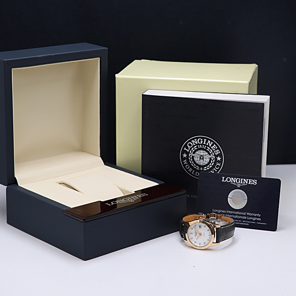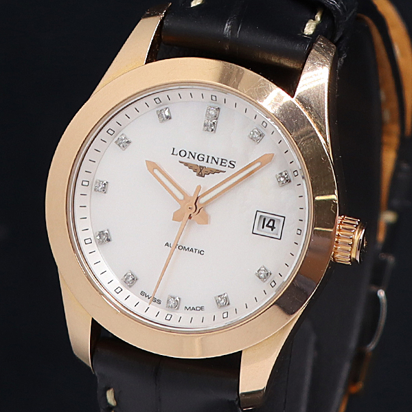 1円保/箱付 稼働 ロンジン AT シェル文字盤 11P L.595.2 コンクエスト レディース腕時計 6976530 9GTT KMR