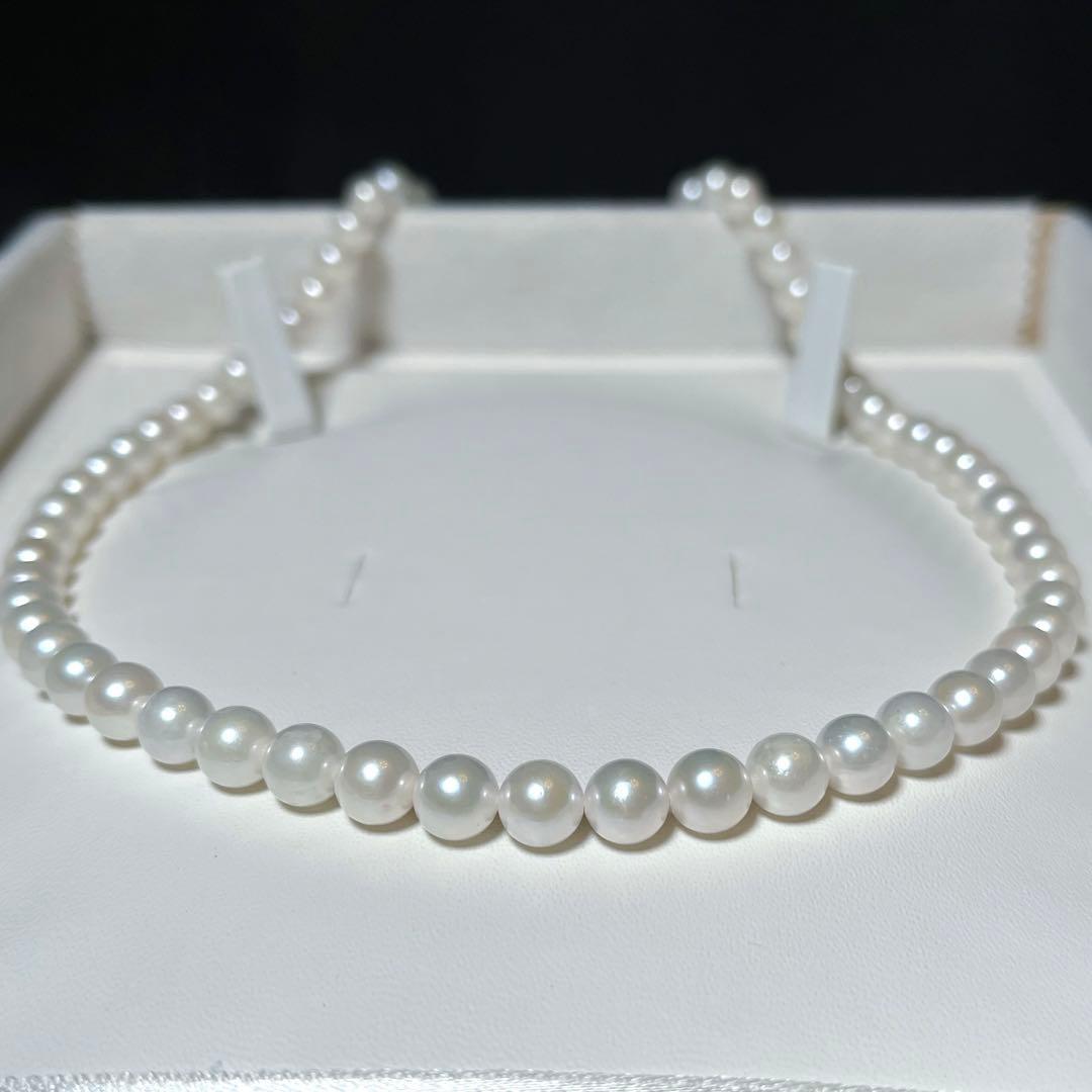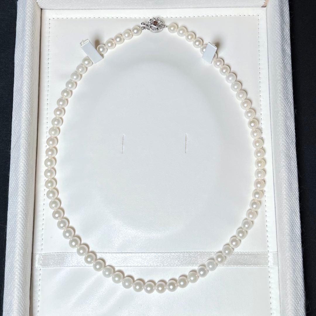色石 白珠 あこや真珠 ネックレス フラワーモチーフ 6.4〜6.9㎜ M445