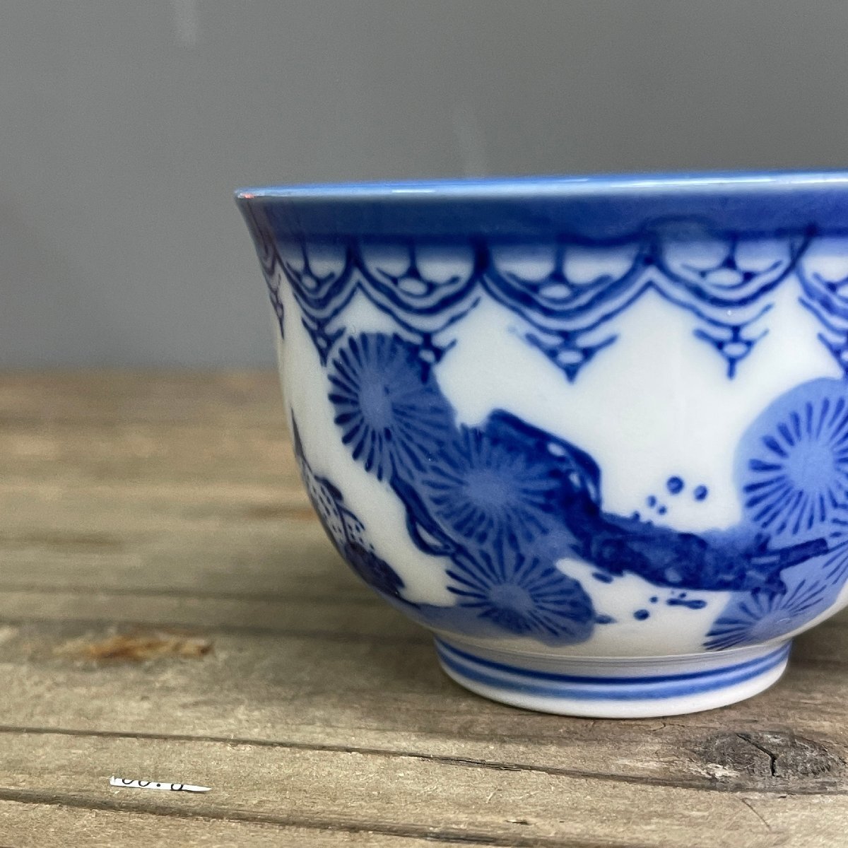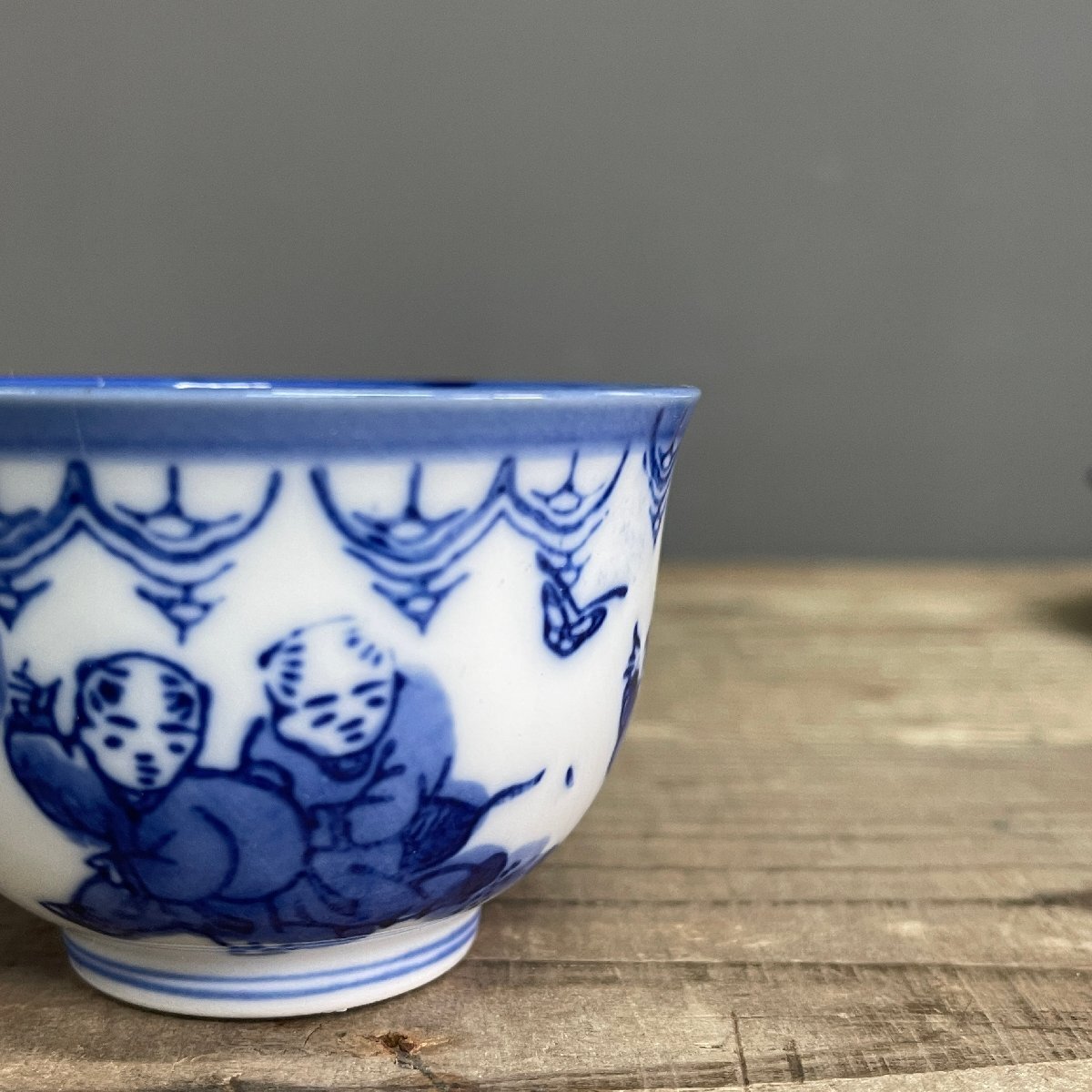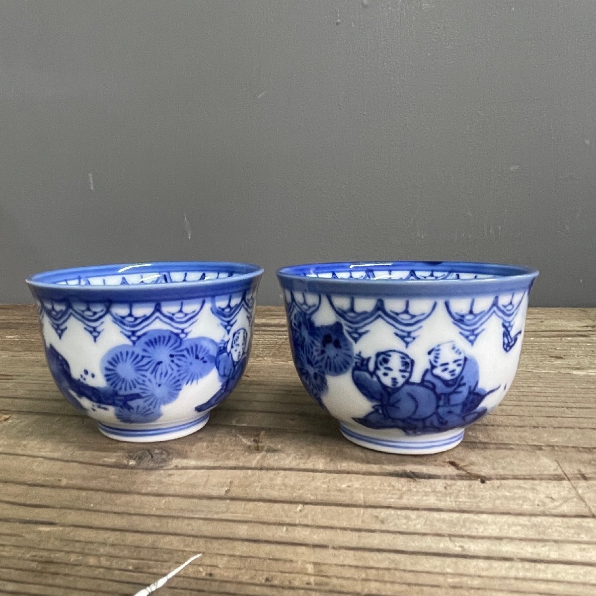 中古 有田焼 人物画 子供の絵 中国画 白磁 陶器 茶器 茶じゃわん 四角皿 2客 昭和レトロ