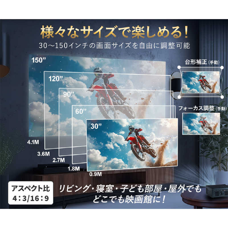 仕様1 フォーカス:手動調整、台形補正:手動調整