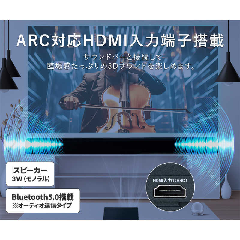 サウンドバーと接続してホームシアターを楽しめます。HDMIケーブル(ARC対応品)により本機とサウンドバーを接続することにより、ホームシアター効果を向上することを可能に。また、ゲームや動画配信サービスにも対応。