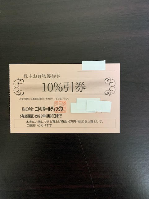 ニトリ 株主優待 お買い物 10%引券1枚(期限:2026年6月30日まで)(匿名配送・送料無料)