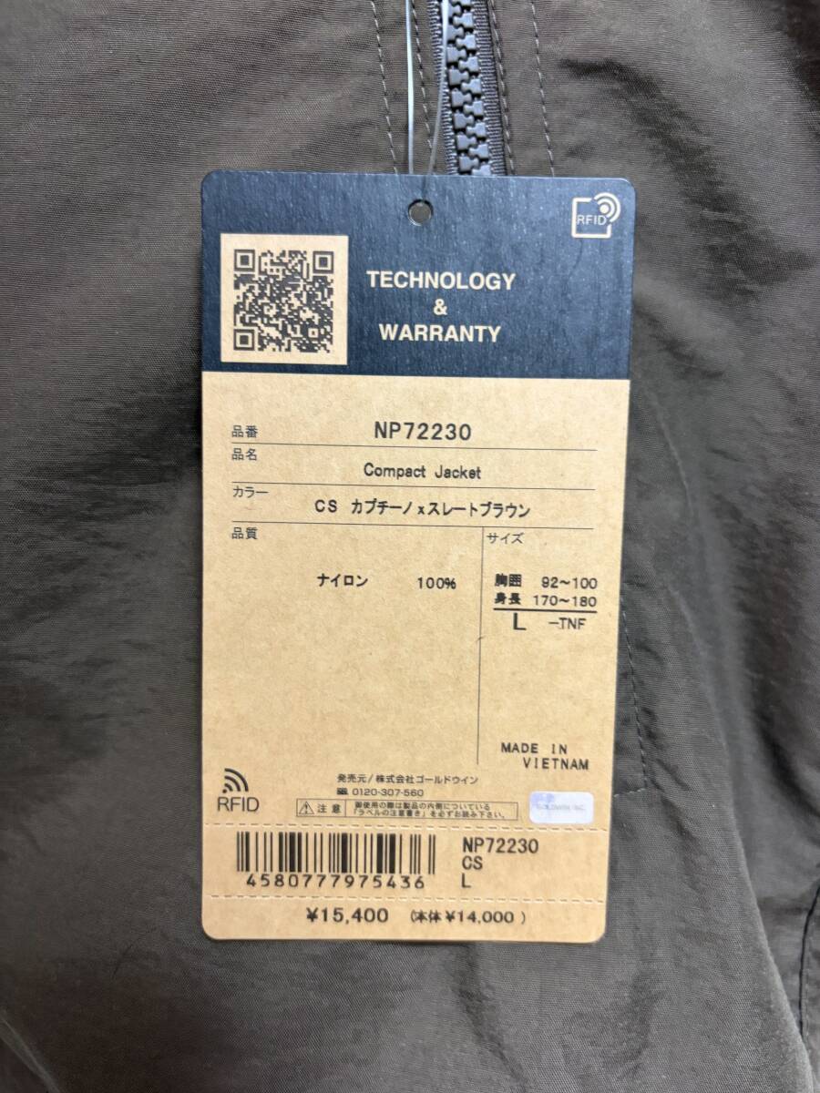 【中古品 1〜2回通勤で羽織った程度】Lサイズ、ザ・ノースフェイス メンズ コンパクトジャケット THE NORTH FACE Compact Jacket