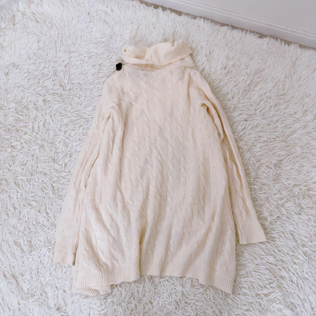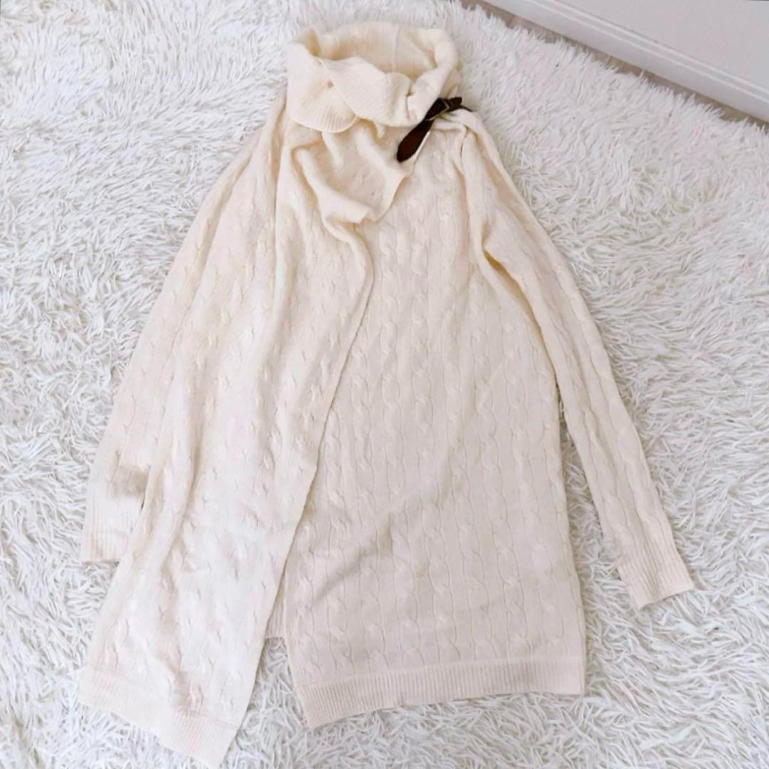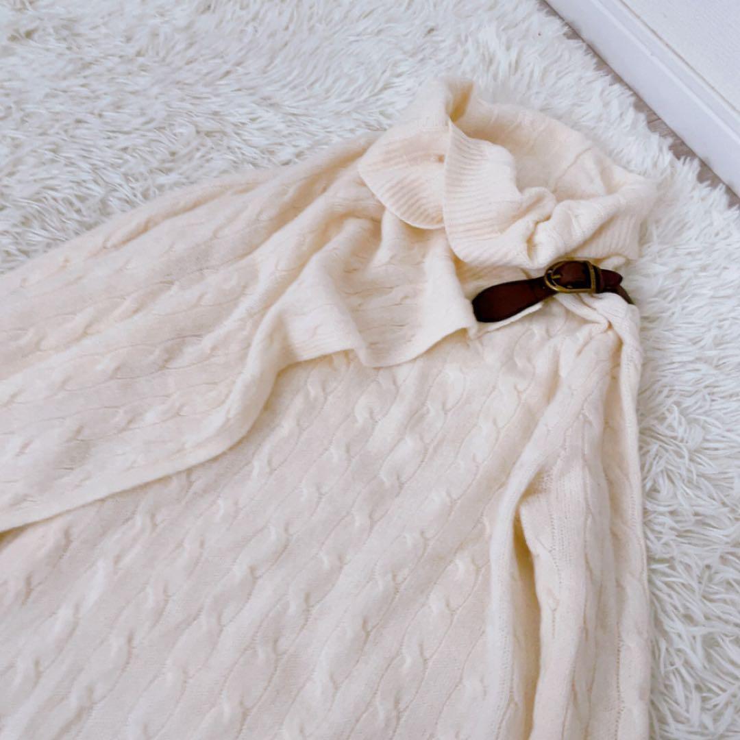 美品 ポロラルフローレン レザー ベルト ケーブルニット カシミヤ ハイネック