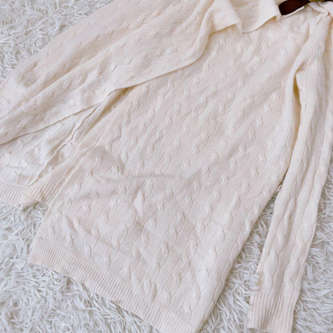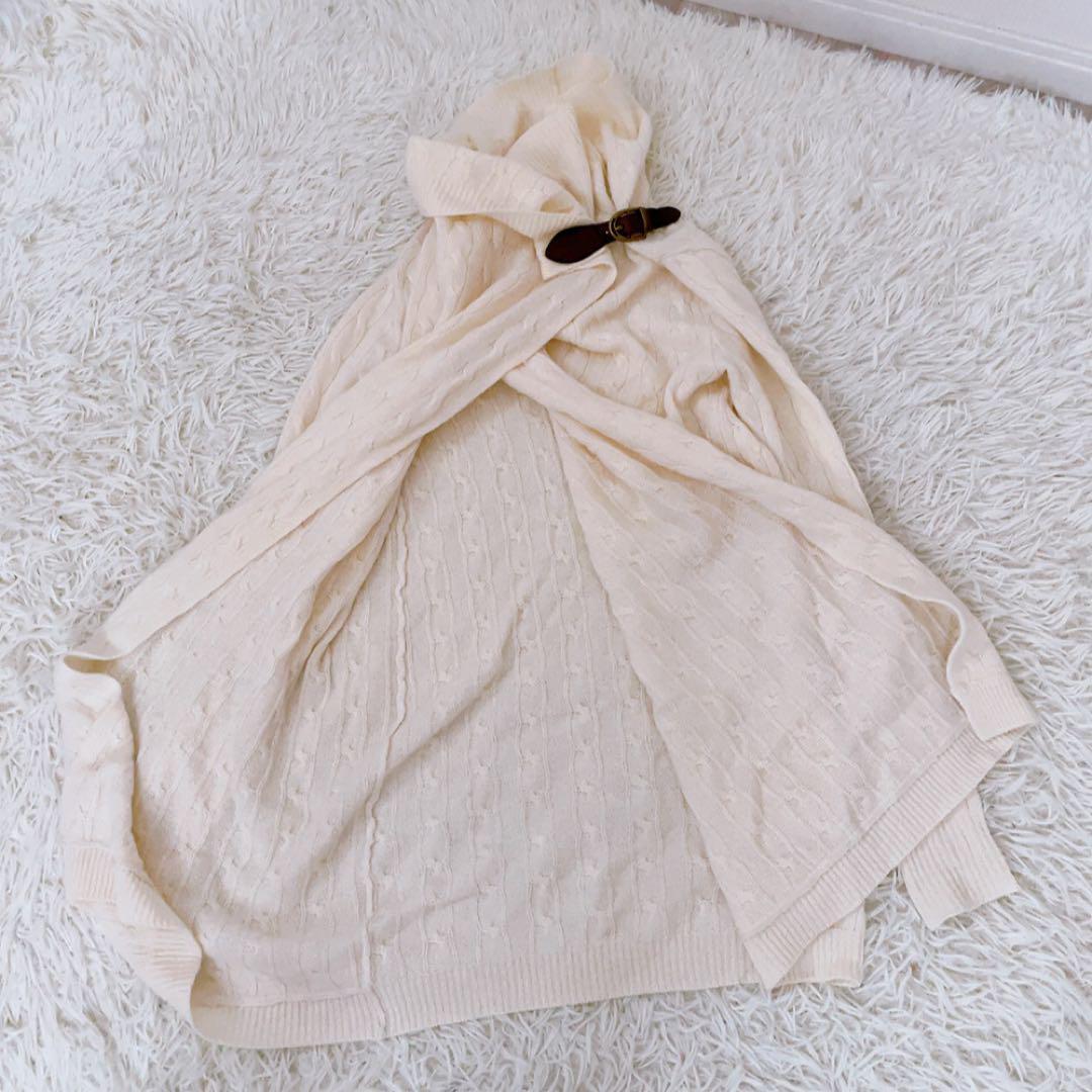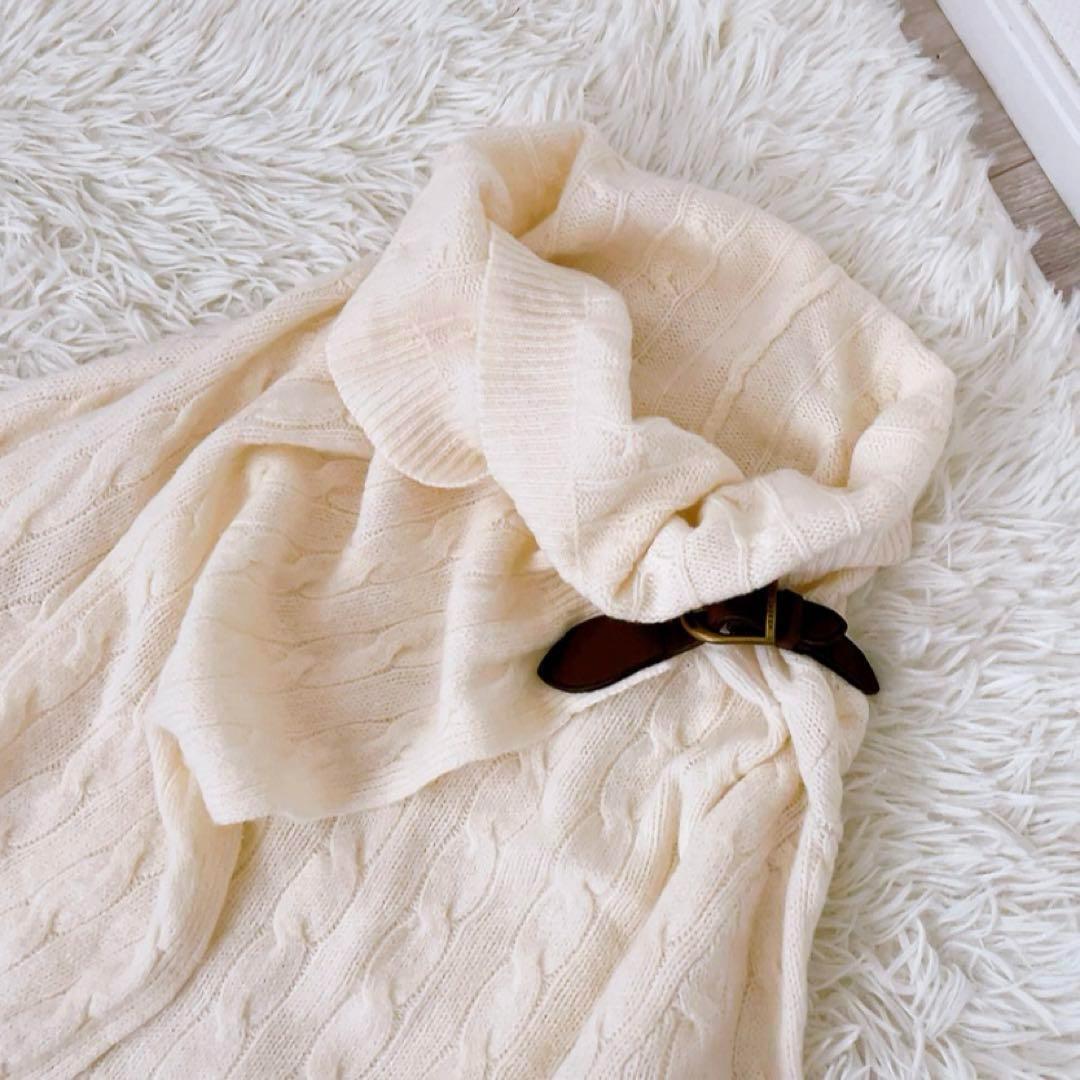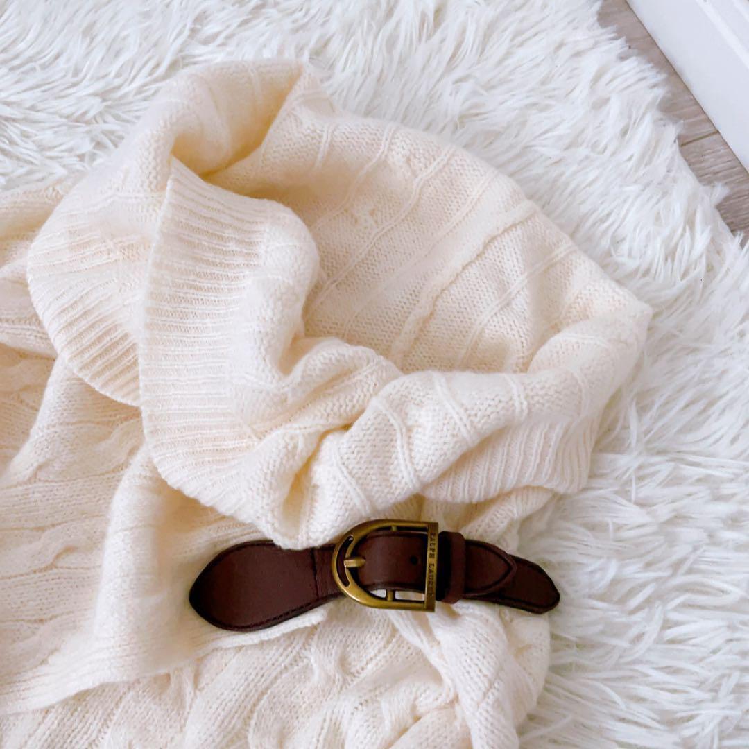美品 ポロラルフローレン レザー ベルト ケーブルニット カシミヤ ハイネック