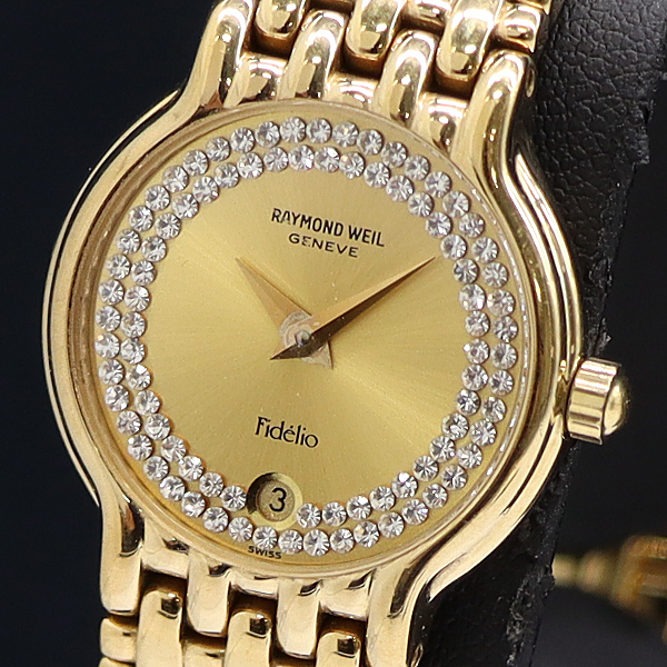 1円 レイモンドウィル 4702 QZ ゴールド文字盤 ラインストーン レディース腕時計 0067100 9ERT KMR
