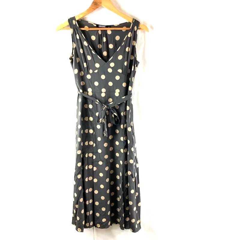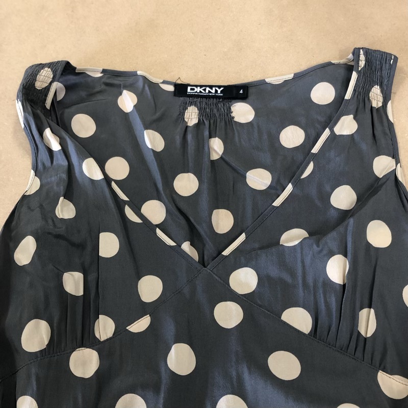 商品名 | ディーケーエヌワイ DKNY ワンピース ドット ノースリーブワンピース ロング インナー付き リボン 絹 グレー系 4サイズ 963708 |
