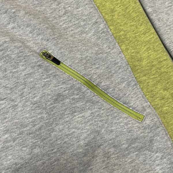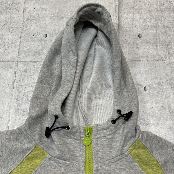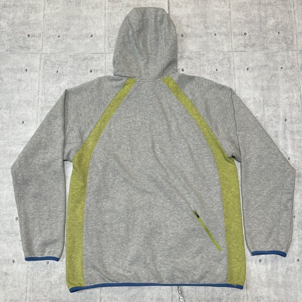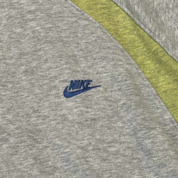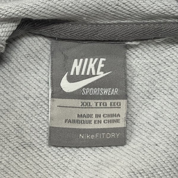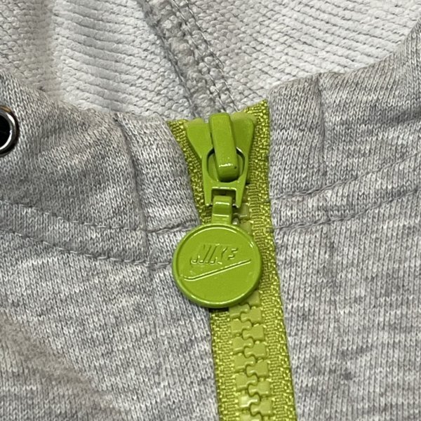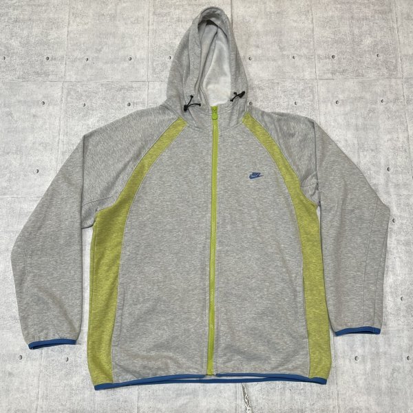 NIKE ラグランスリーブ ジップアップパーカー 刺繍ロゴ ワンポイント ナイキ  フーディー フーデッド スウェット トレーナー 石瀬7522 ロゴチャームつき ジッパー グレー×イエロー XXL 大きいサイズ ゆるダボ ビッグシルエット スウォッシュ スウッシュロゴ
