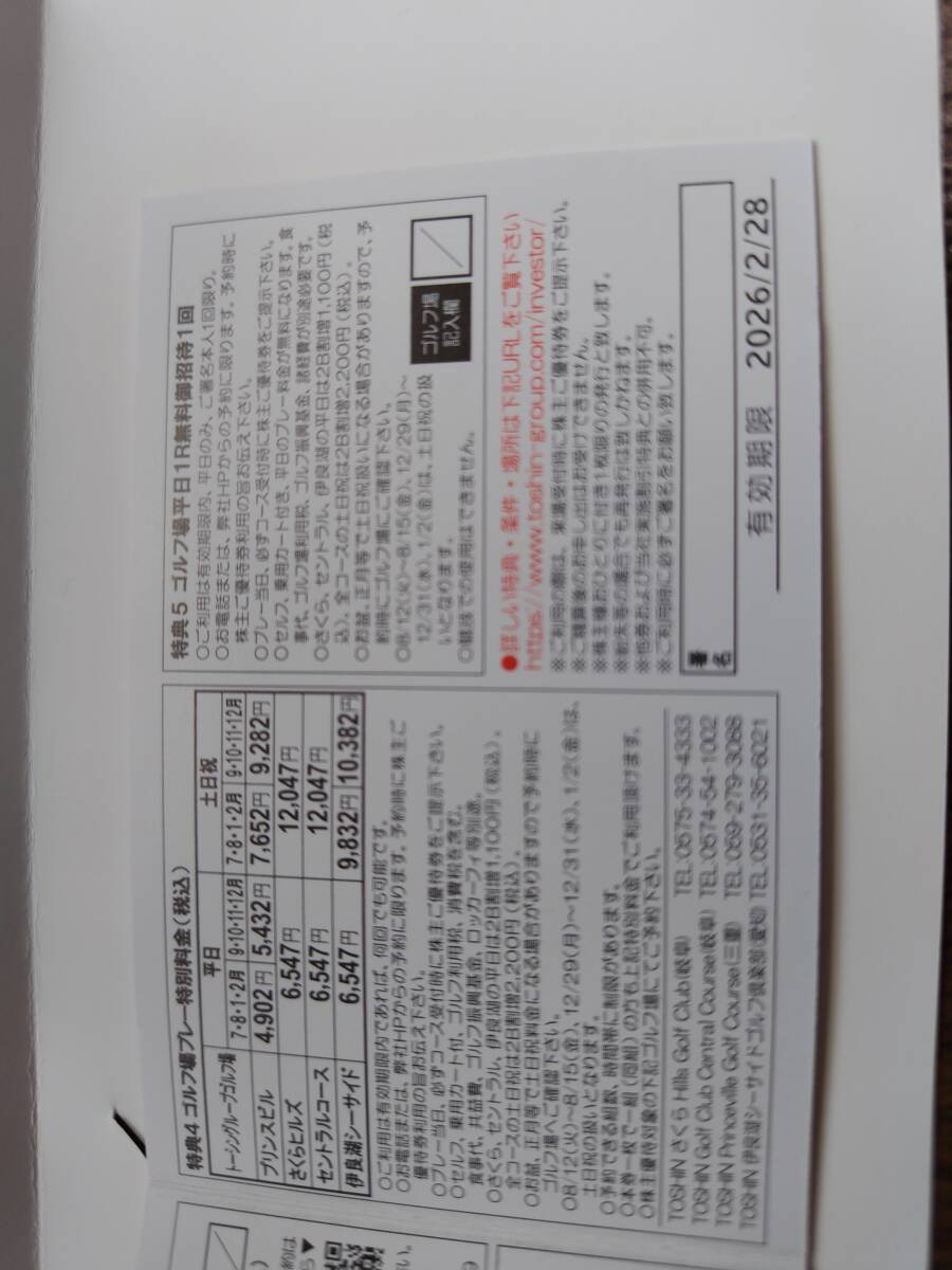 トーシン 株主優待 ゴルフ場平日1R無料招待