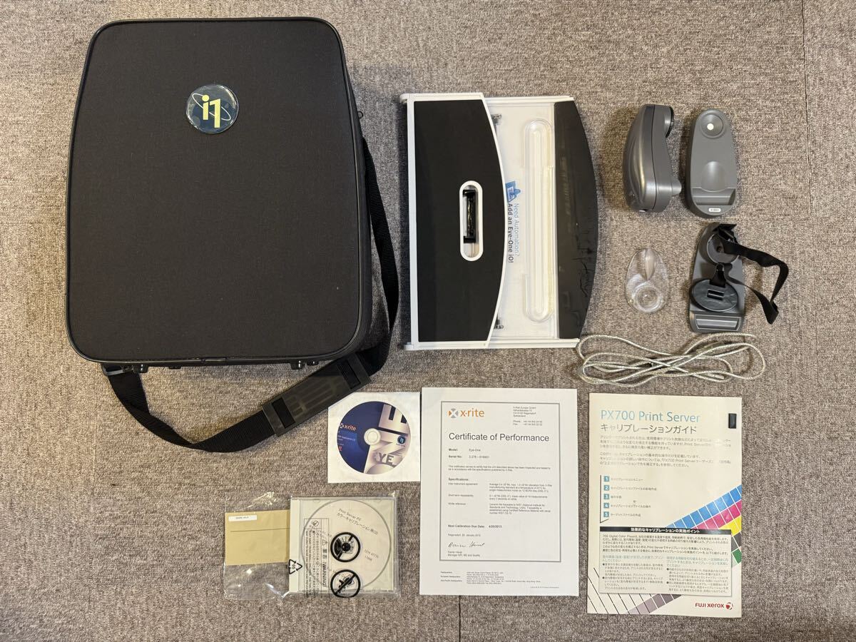 xrite i1 Eye-One Proは、目立った傷や汚れはなく、比較的きれいな状態です。動作確認済みです。PX700 Print Serverのキャリブレーションガイドも付属しています。