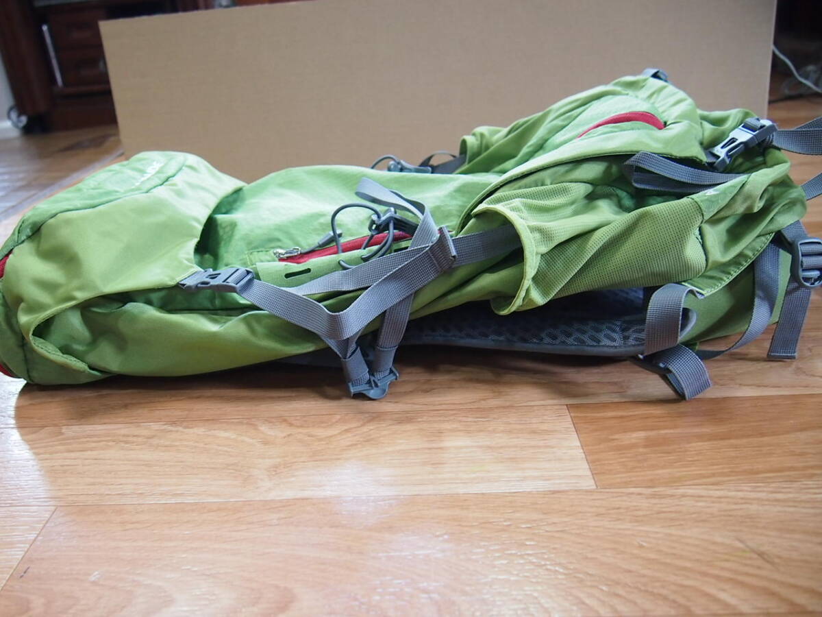 コンプレッションストラップにより行動中のバックパックの状態を、背負ったまま左右のストラップを操作して調整が可能