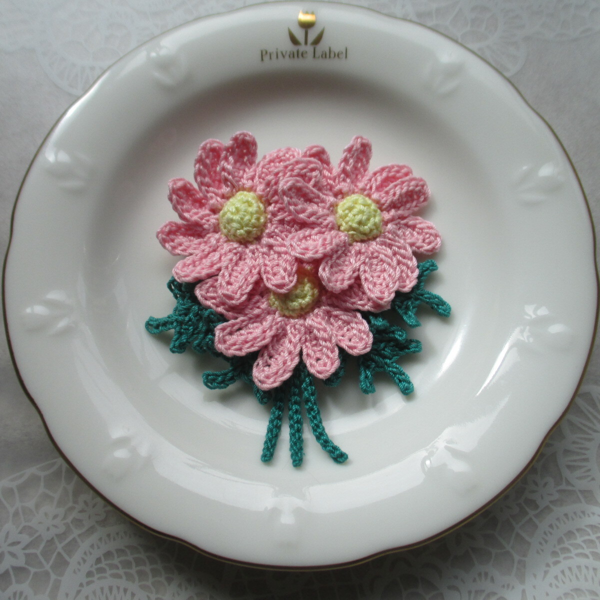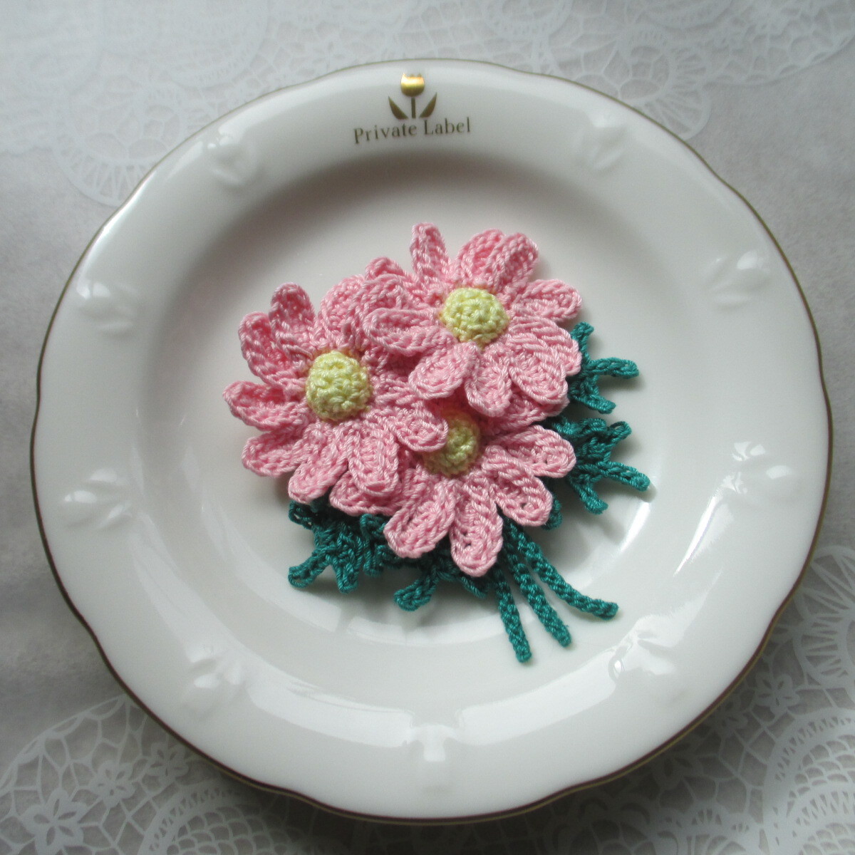 商品名 : ハンドメイド☆レース編み  マーガレットのコサージュ、ブローチ