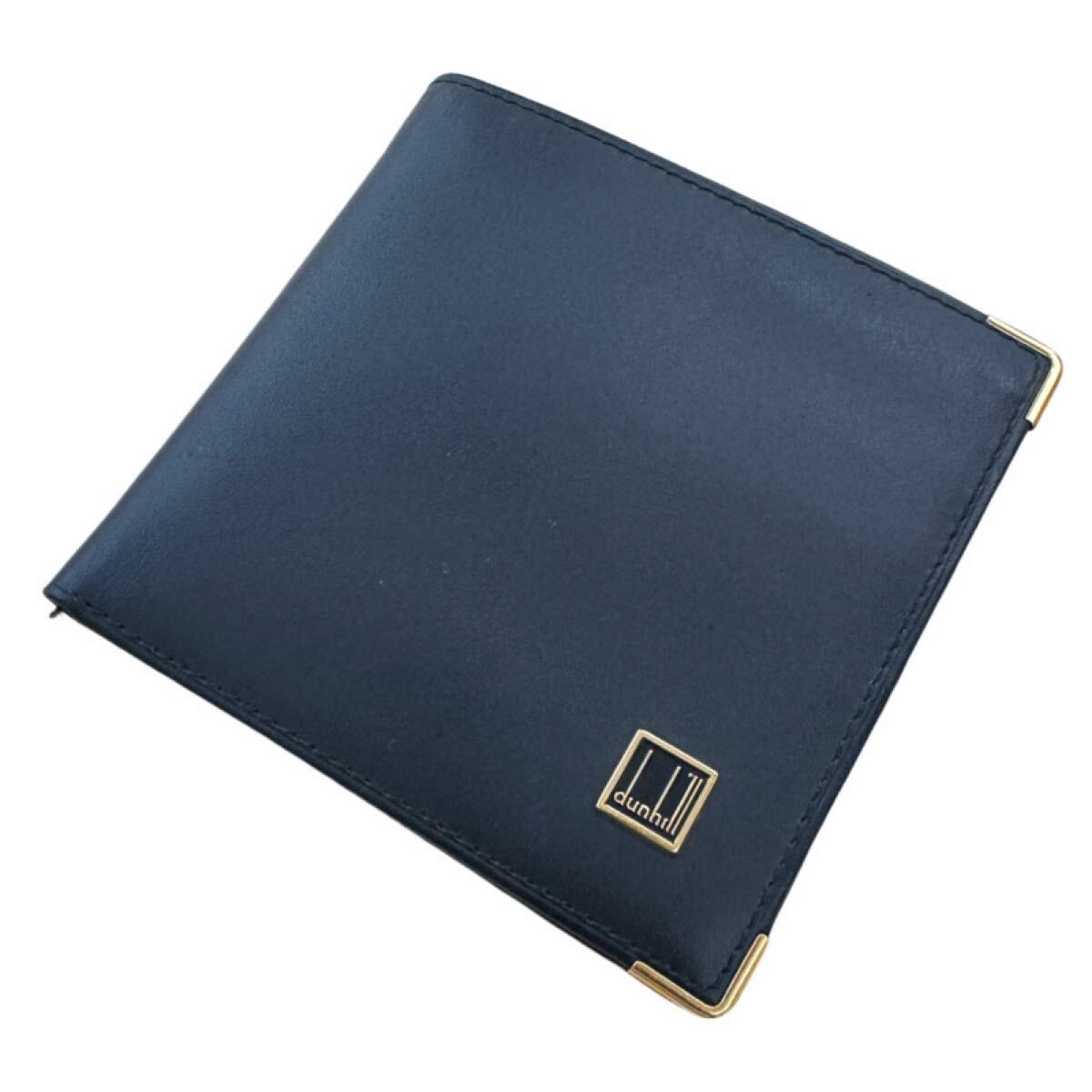 dunhill ダンヒル レザー ゴールド金具 二つ折り財布 札入れ コインポケット カード入れ ブラック 美品になります。