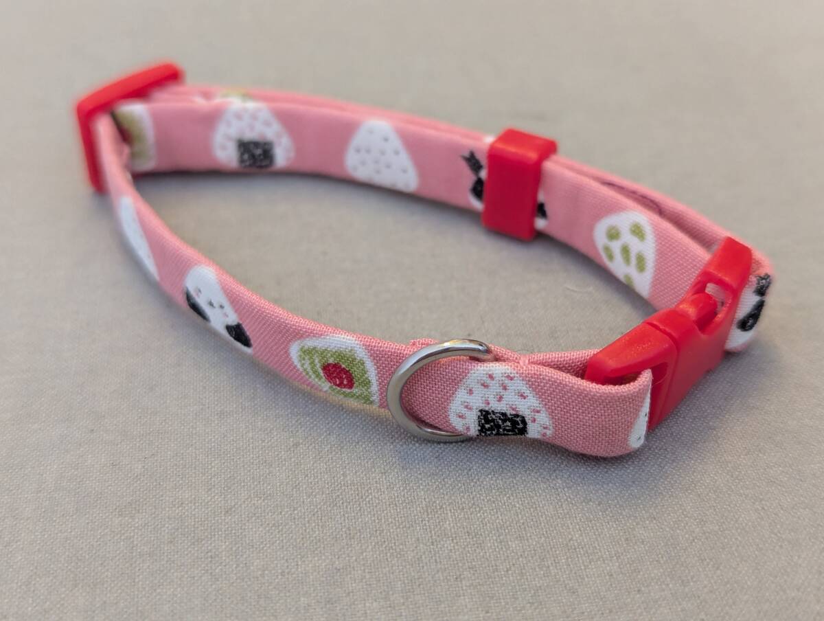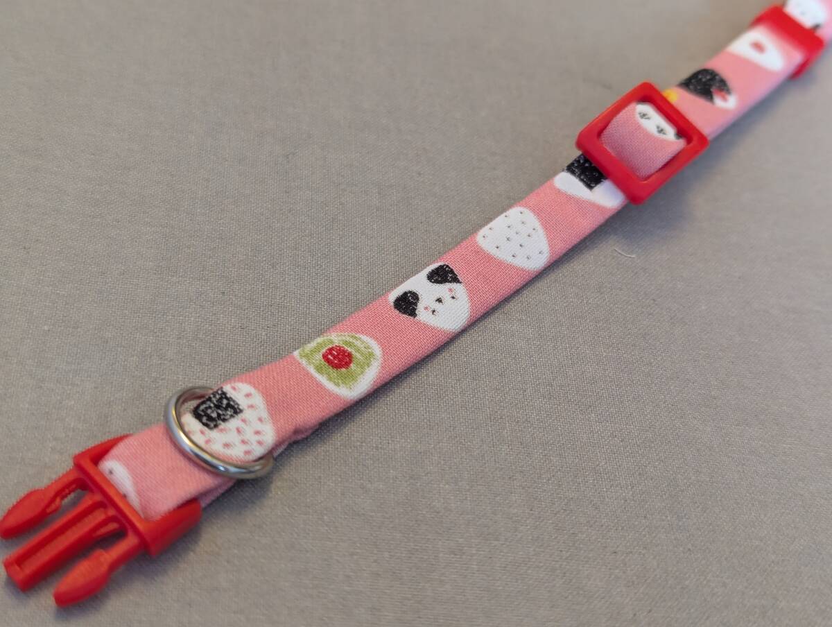 ★手作り京都作家物 猫 首輪 和柄★ピンク地おにぎりころころ★ハンドメイド (セーフティタイプ) 即決700円