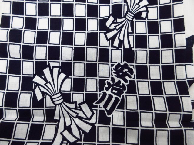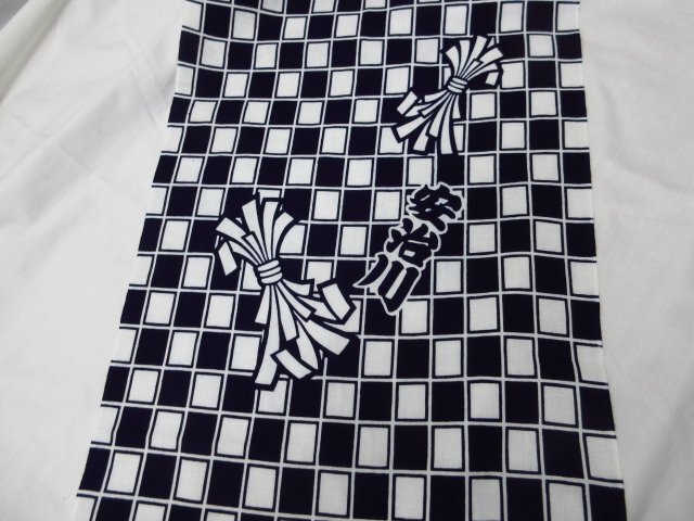 色 白x紺色 市松模様 格子柄 安治川の文字入り
