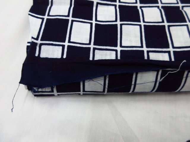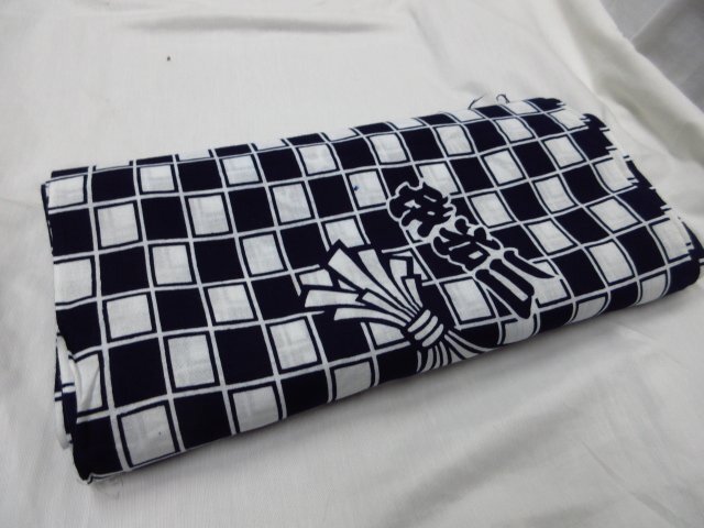 t5348 未仕立て/未使用保管品 相撲 浴衣生地 反物 布 ゆかた 安治川 市松模様 格子柄 約12m 白x紺色