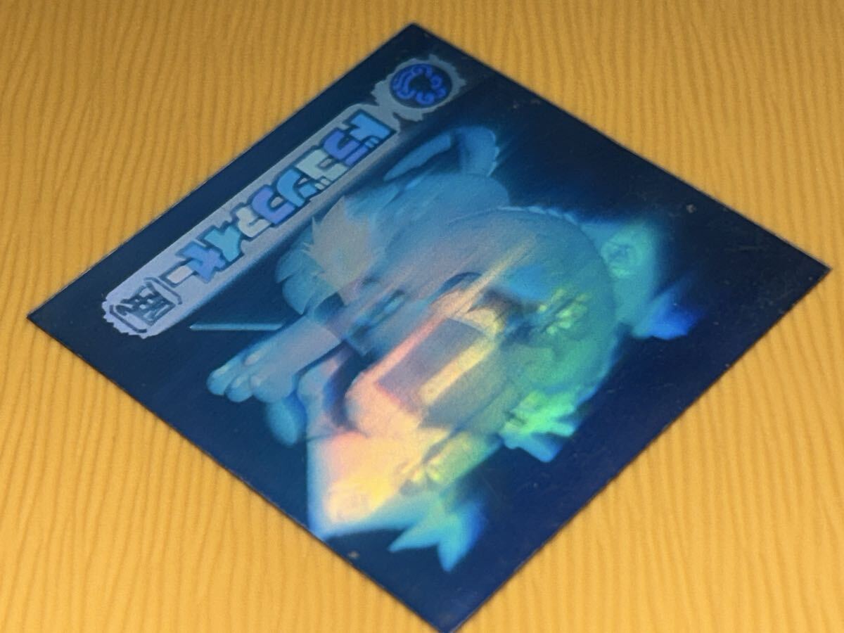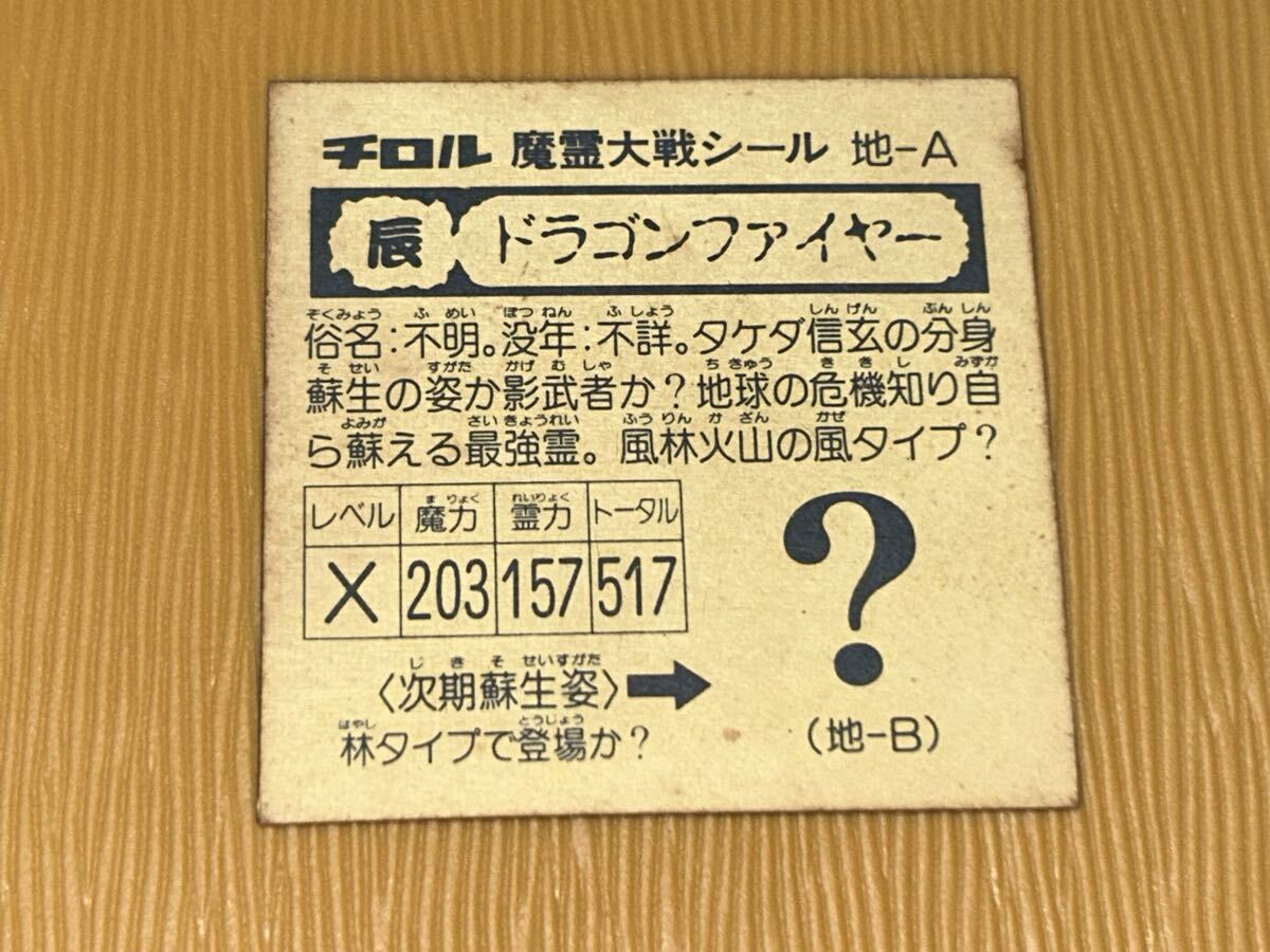 裏面の状態がいまいちで良品とは言えませんが、折れは右下の角の小折れのみで致命的な折れや爪痕はないので、並の状態と言えます。ドラゴンの頭部が動いて火を吹いているのを際立たせているデザインです。価格優先の方向けです