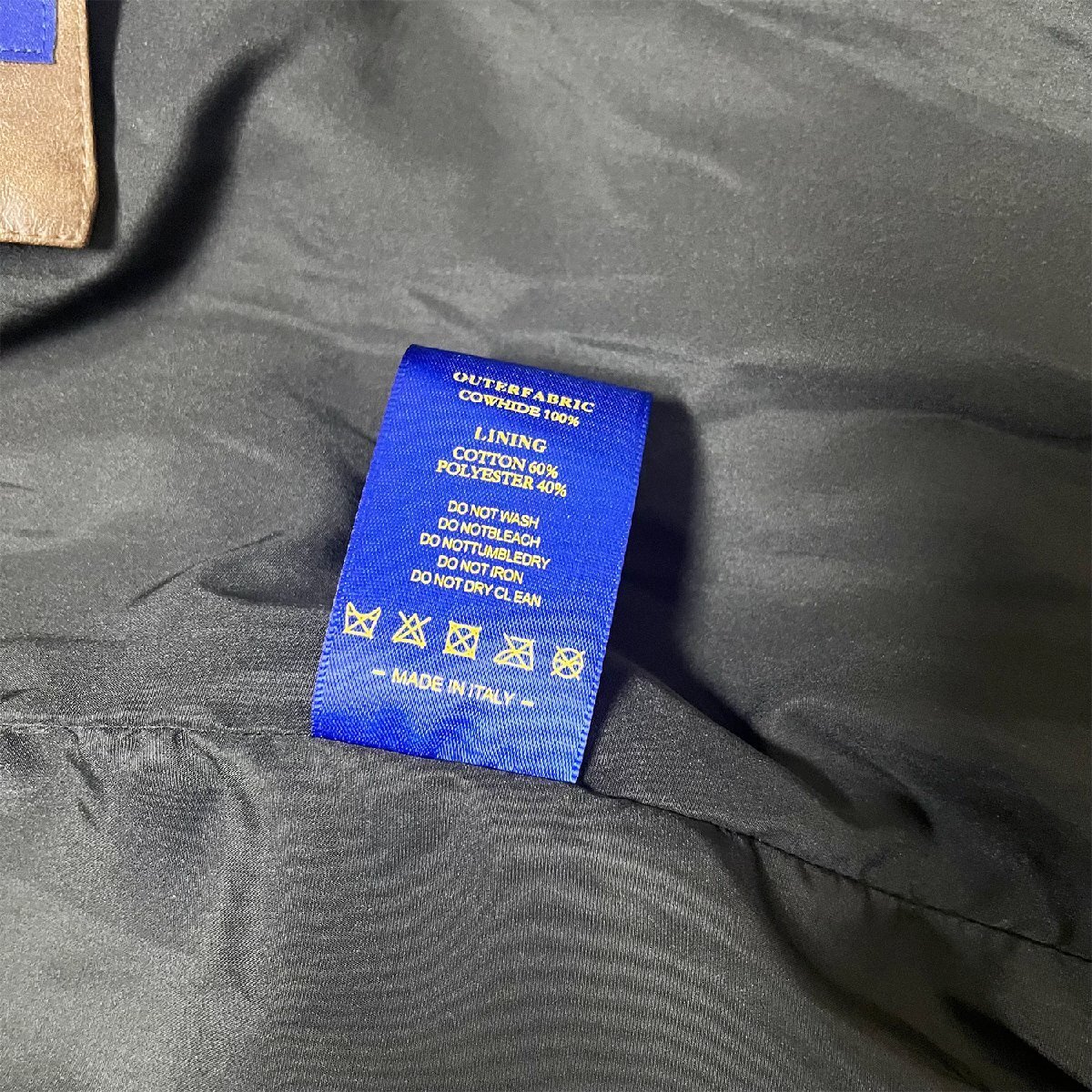 表地はしっかりとした厚みのある牛革で、着るほどに体に馴染み、味わい深い風合いが増していきます。適度な光沢感を放ち、高級感が溢れています。裏地にはコットン混紡素材を使用しており、通気性が良く、肌に優しい着心地を実現します。