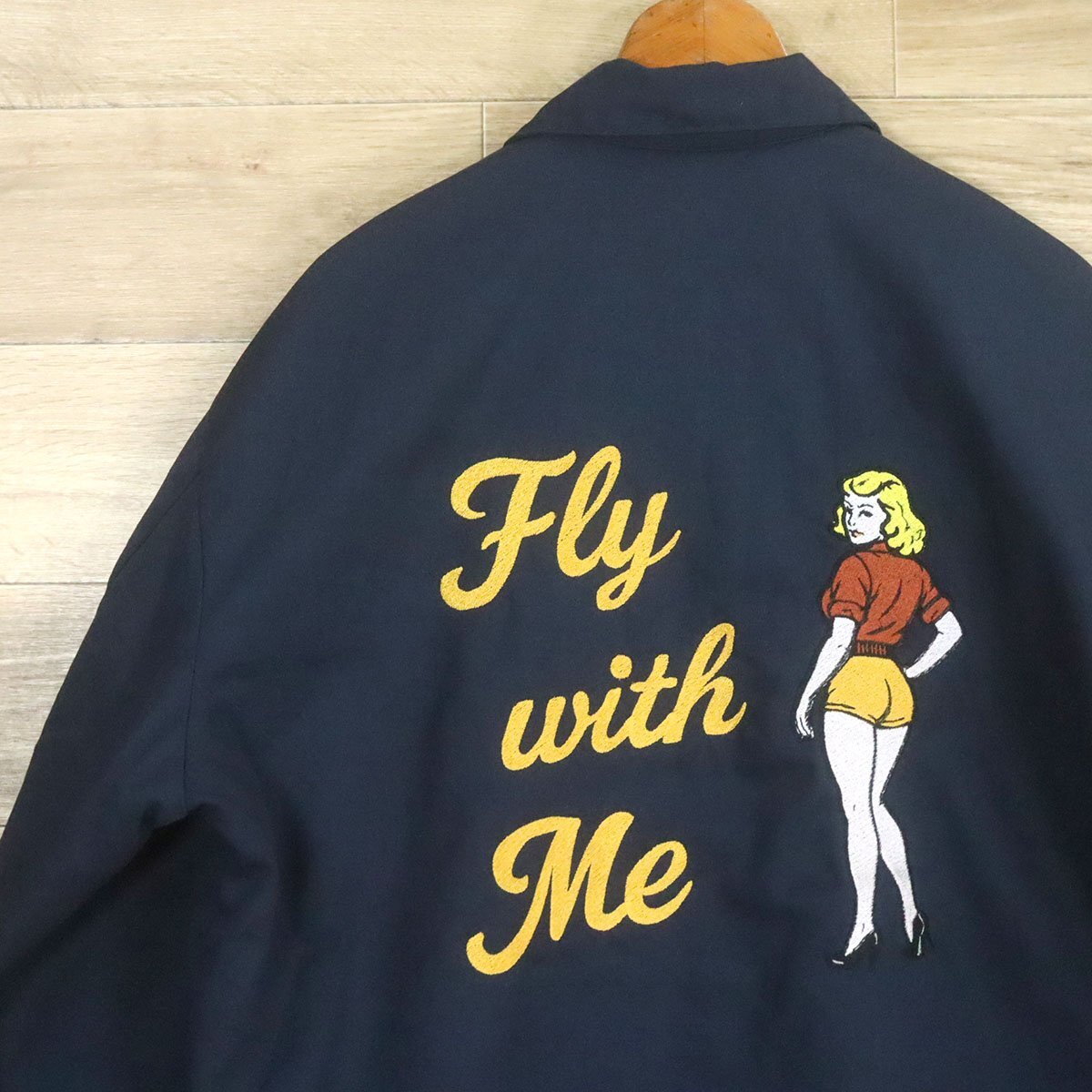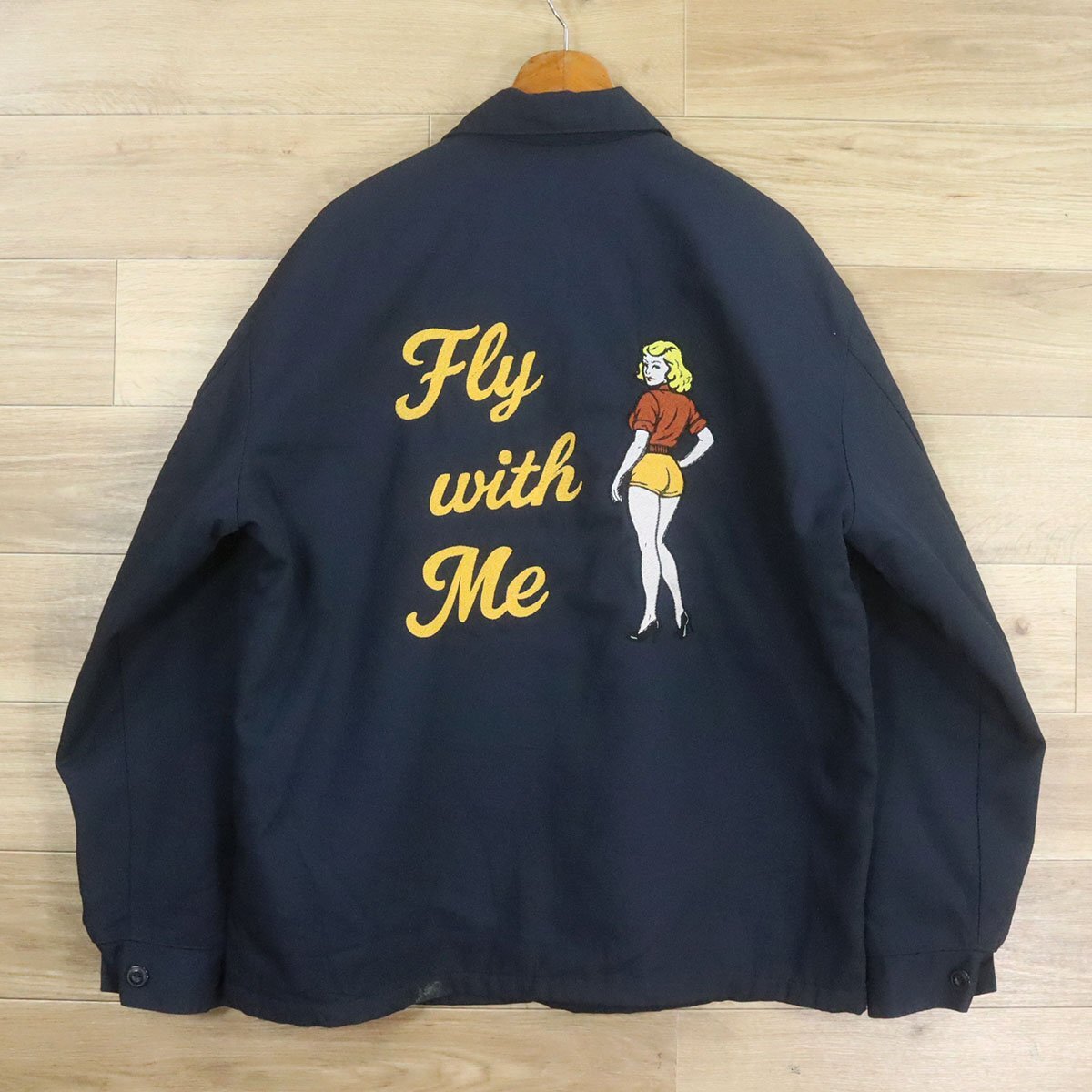 M14T/D9.28-1 アメリカ古着 RED KAP レッドキャップ ワークジャケット L メンズ バック刺繍 ピンナップガール Fly with me