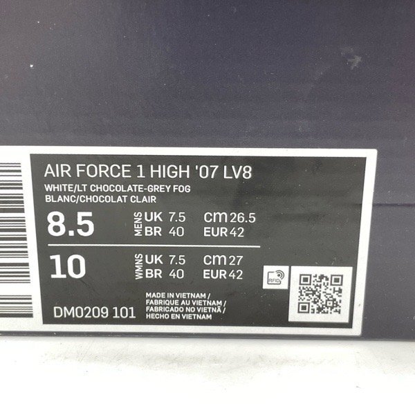 NIKE/ナイキ AIR FORCE 1 HIGH ’07 LV8/エアフォース 1 ハイ WHITE AND LIGHT CHOCOLATE DM0209-101/26.5 /080 | |||||||||||||||||||||||||