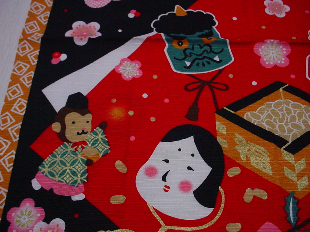 ♪和雑貨 タペストリー インテリア 節分 風呂敷 海外土産 (株)前田染工謹製 日本製♪です。