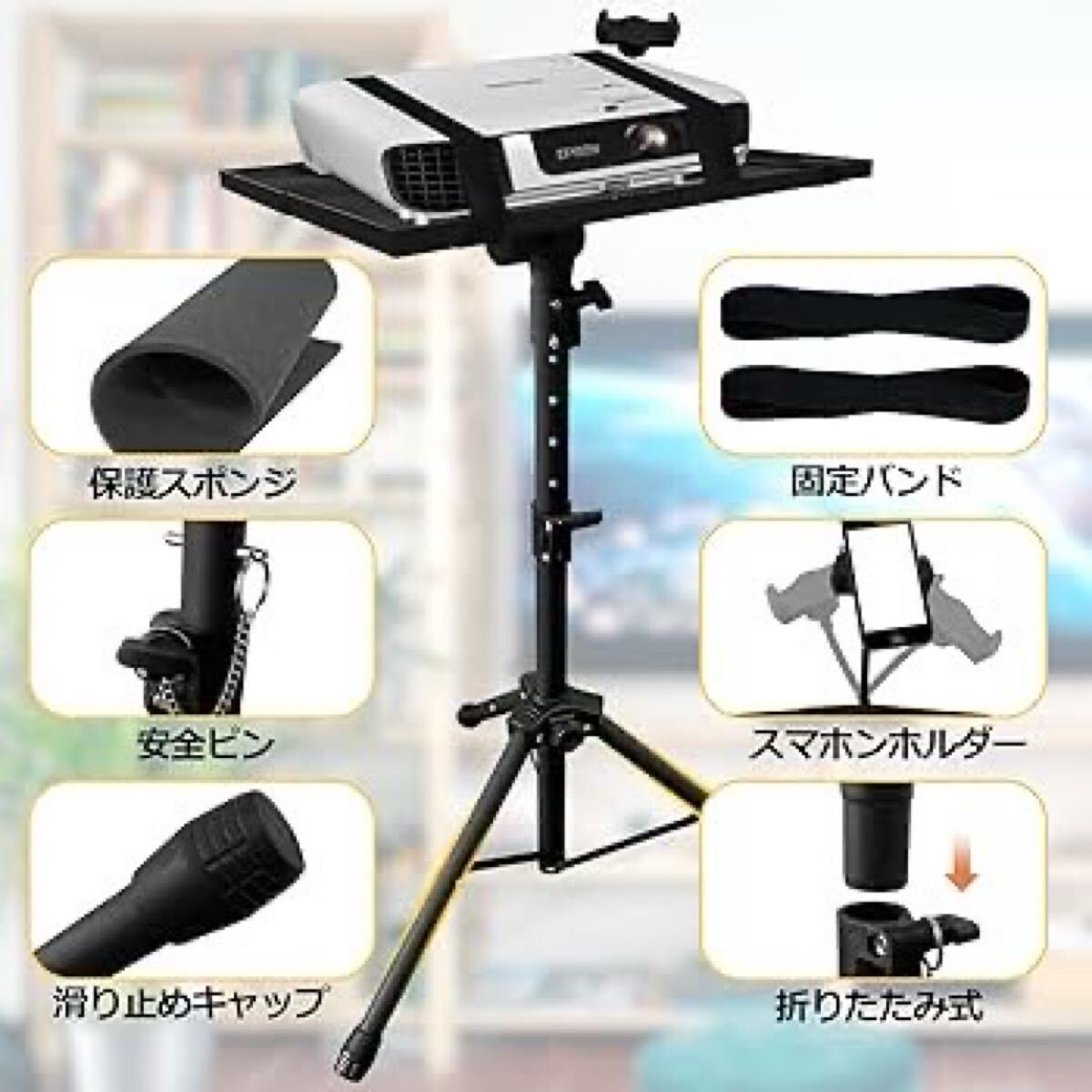プロジェクター台 三脚式 プロジェクタースタンド 折りたたみ式 ブックスタンド 三段式 55~120cm スマホンホルダー付